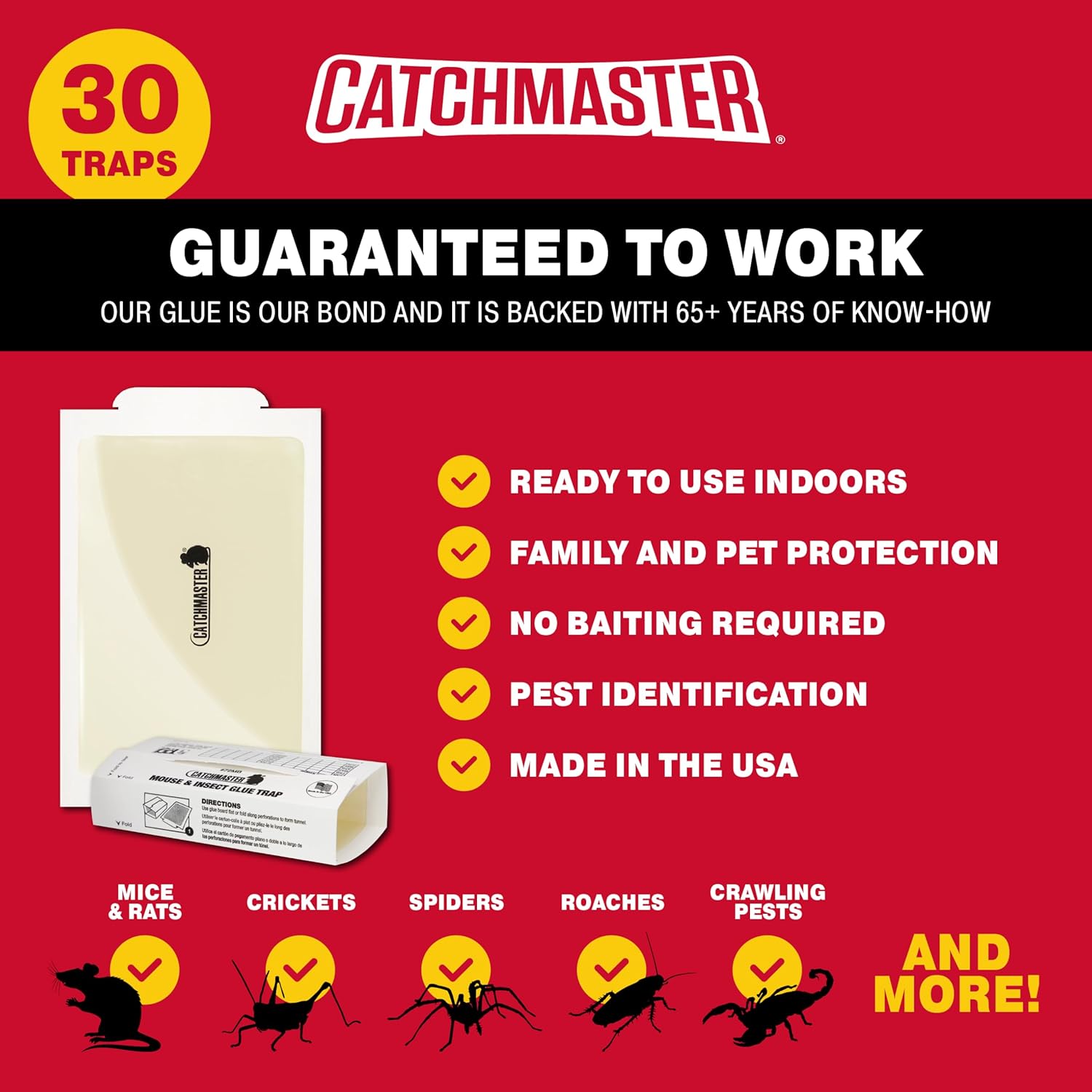- HOME & FAMILY SAFE: Designed to help you keep your family protected and safe from unwanted pests in your home, Catchmaster's glue traps are intuitive, secure and effective. Our rodent and insect killer traps are easy to place, simply put the insect trap against walls & along pathways to catch unwanted pests and insects. Our products are tested under the harshest field conditions to ensure maximum reliability for any level of pest control expert.