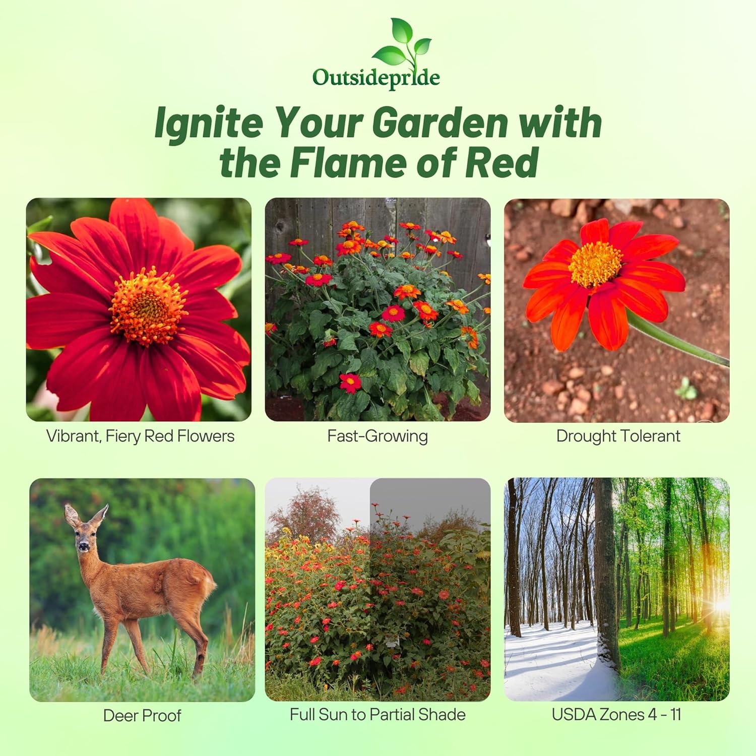 - IMPRESSIVE HEIGHT & FAST GROWTH: Growing up to 40 inches, our Red Torch Mexican Sunflower adds dramatic vertical interest to any garden. Perfect along borders or fences, it creates a lush, layered look when paired with plants from other annual flower seeds. This fast-growing flower enhances gardening beds with its height and vibrant colors.