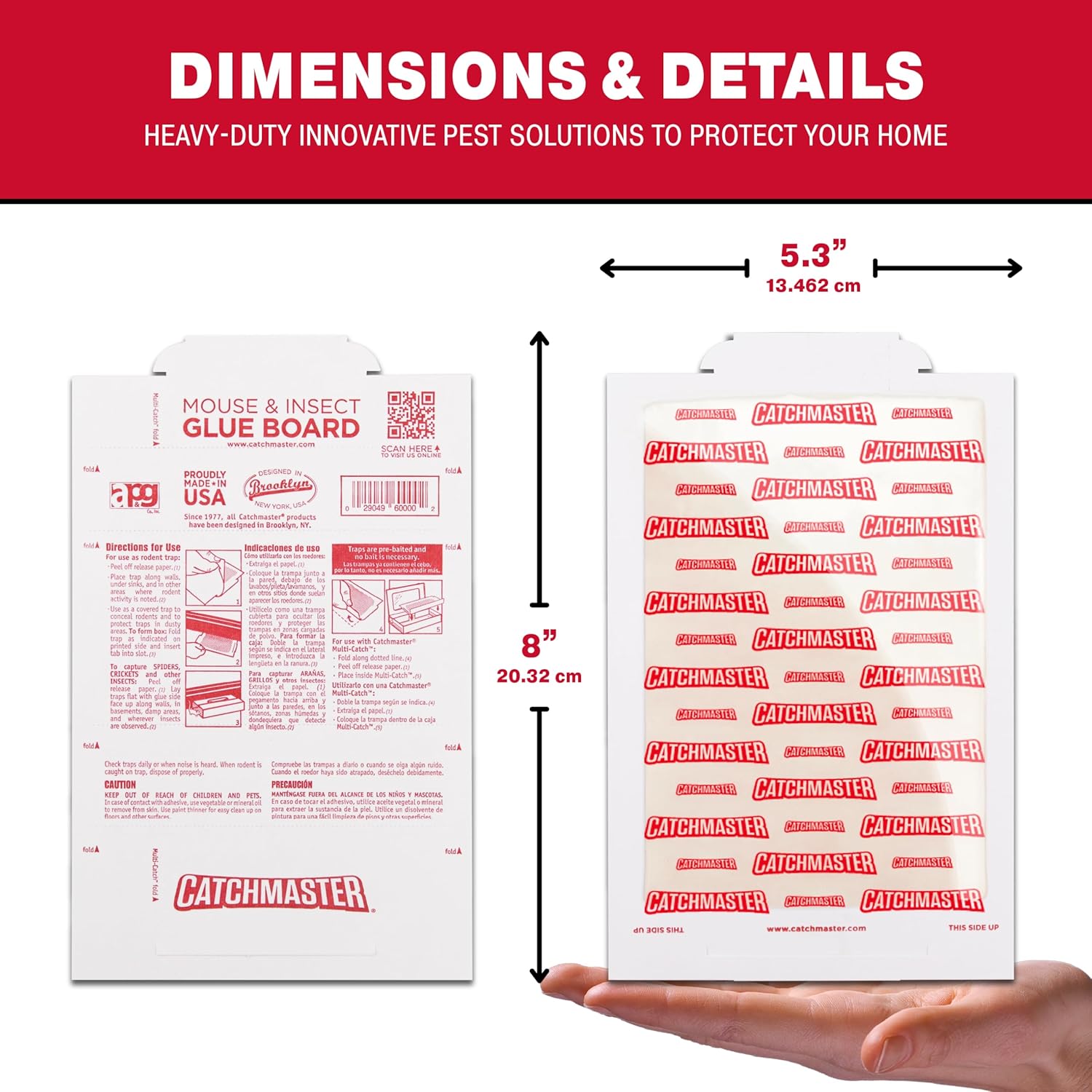 Catchmaster Pro Strength Mouse & Insect Glue Boards 60pk Traps Indoor for Home, Adhesive Bug Catcher, Rat & Rodent Sticky Trap, Non Toxic Bulk Pre-Baited Glue Traps, Pet Safe House Pest Control