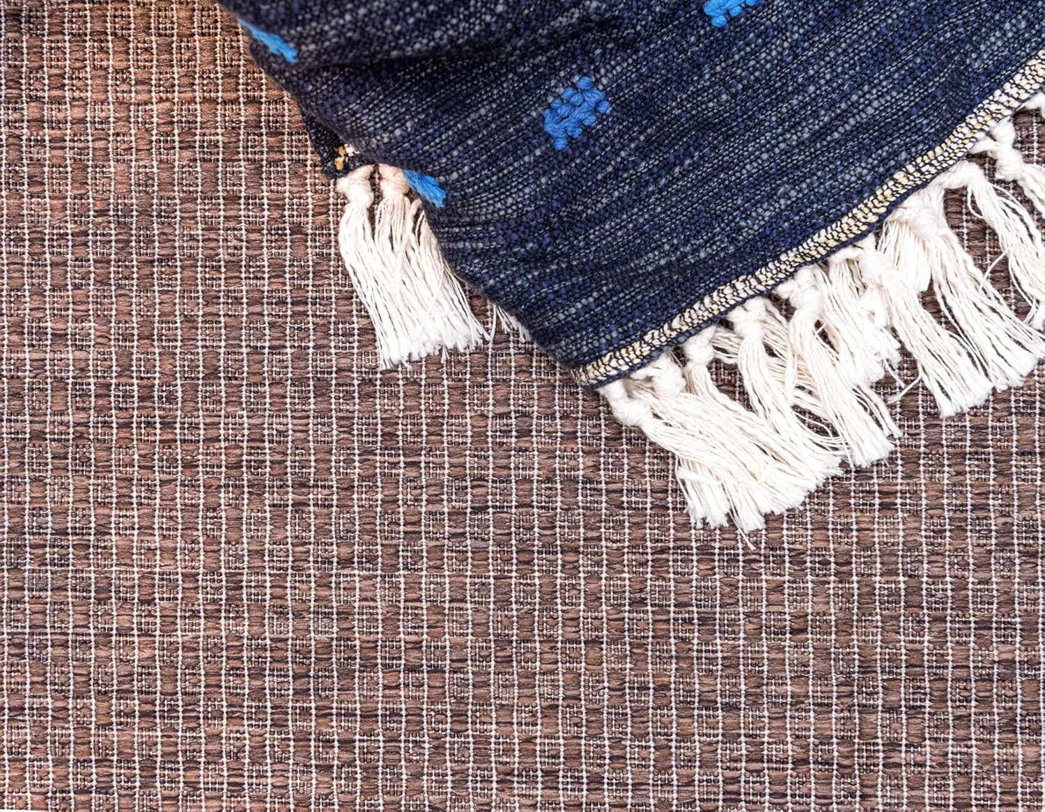 Unique Loom Outdoor Border Collection Area Rug - Soft Border (7' 1" x 10' Rectangle, Brown/ Ivory)