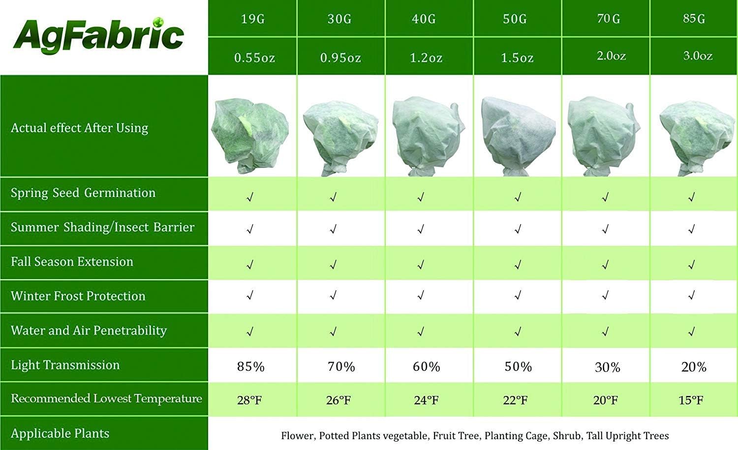 - SUITABLE SIZE Perfect for Greenhouse size 130''high and 115''wide, Heavy-weight FRCs (.9-1.2 oz./sq. yard): Are usually used to extend the growing season in spring and fall, allow 30%-50% light transmittance, and recommend 3Β°-8Β°F. of frost protection.