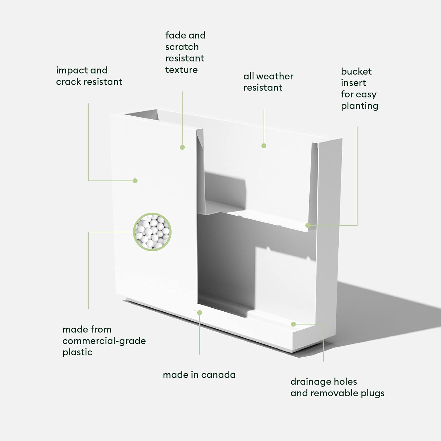 Veradek Span Plastic Box Series Planter - Tall Rectangular, White, All-Weather Resistant, Removable Insert Bucket, Modern Design, Indoor/Outdoor Use