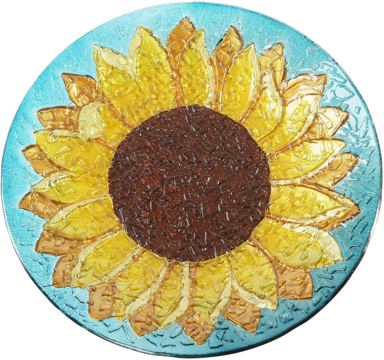 Glass Bird Bath Garden Hand Painted With Crushed Glass Bowl - Large Wild Bird Feeder for Garden, Yard, Patio, Lawn Decor - 18 x 2 x 18 Inches, 64oz