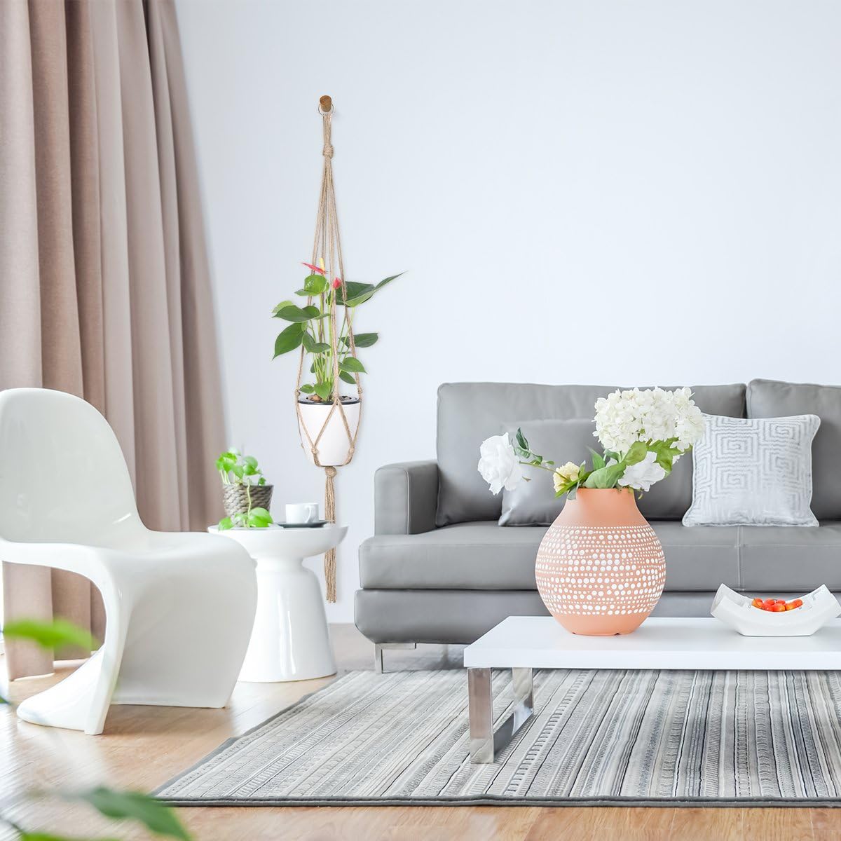 - Handcrafted rope: the plant hangers are made of sturdy and durable natural jute, with hollowed-out design, contracted and fashionable, they can match with any modern or conventional style.