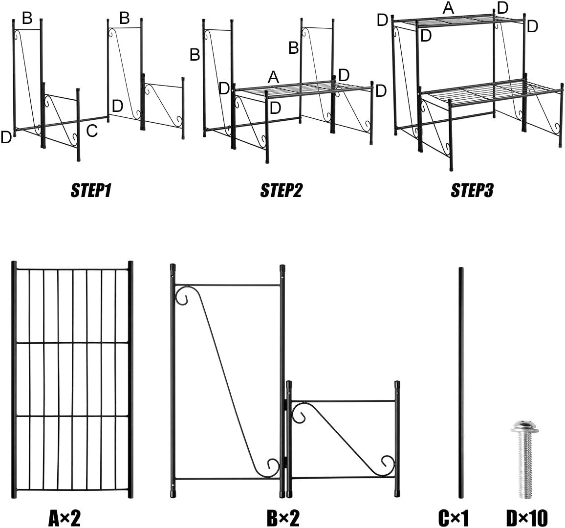 DOEWORKS 2 Tier Metal Plant Stand Storage Rack Shelf, Flower Pot Holder Display Shelf, Black