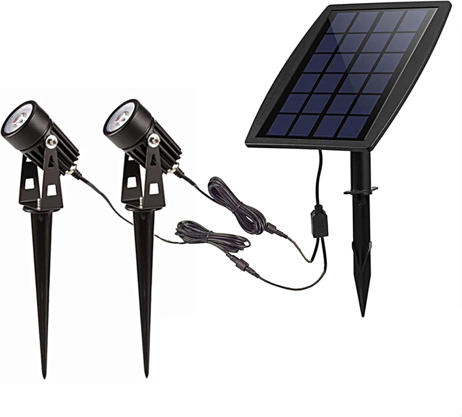 - Advantage: Our solar lights can be separate the solar panel, make sure the solar panel expose to the sun enough to keep it fully powered and also can protect the two lights avoid exposure, thus prolong your light lifespan. Cast aluminum textured black finish spotlight, with clear impact resistant lens on fixture, Waterproof and dust-proof, IP65 protection class.