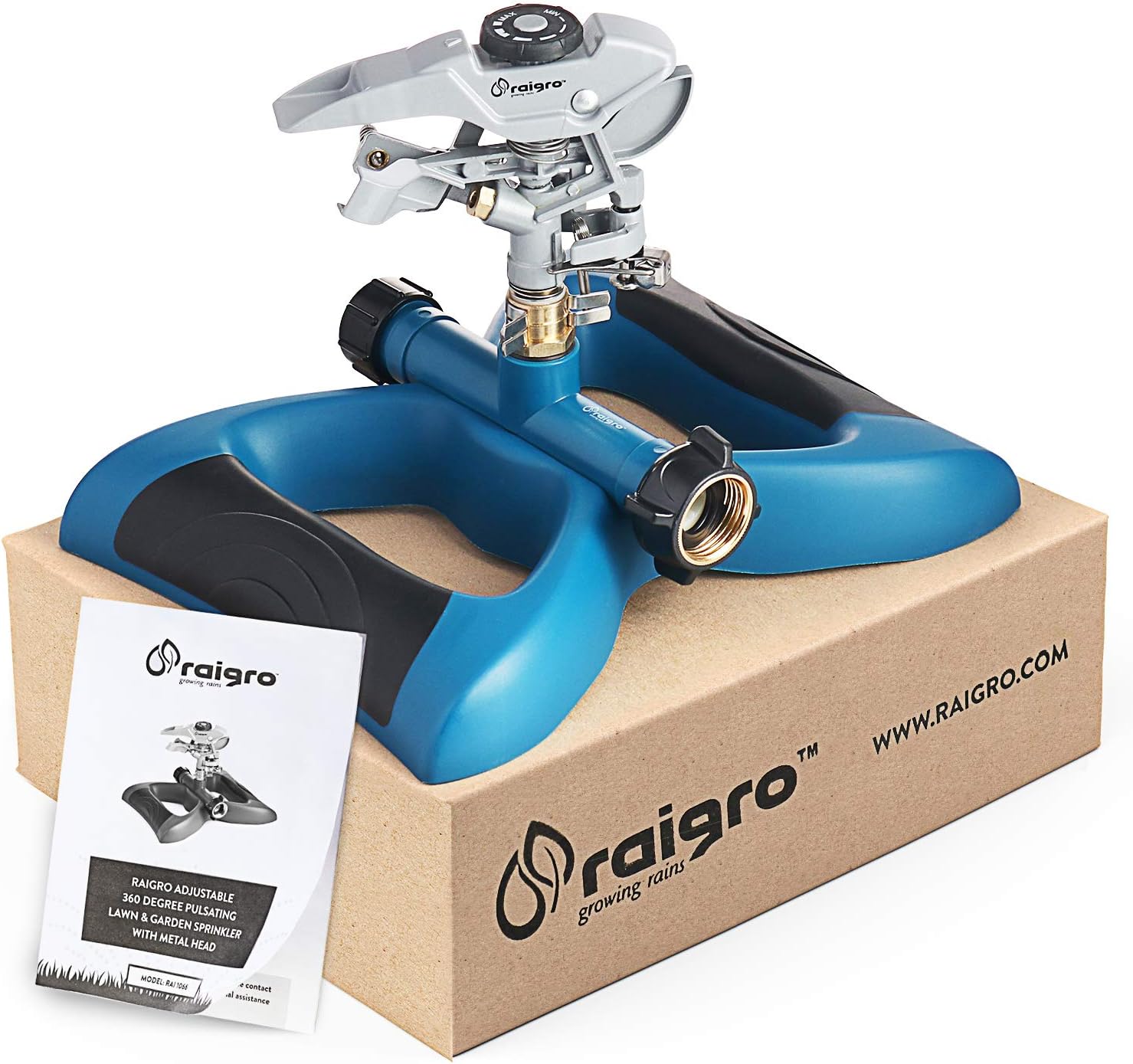 Lawn Sprinkler with Metal Head - 360 Degree Pulsating Garden Water Sprinkler for Lawn - Waters up to 85 feet in Diameter, Adjustable Spraying Area and Distance