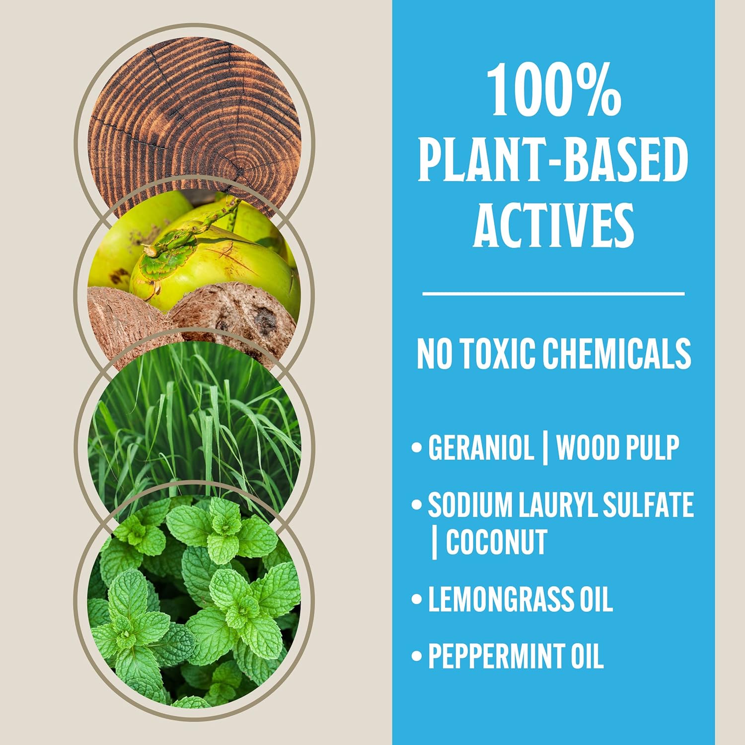 - Plant-based Repellent. The active essential oils Geraniol, Lemongrass, and Mint come together to naturally repel pesky mosquitoes. These natural plant oils have been repelling bugs for ages and work together for highly effective results.