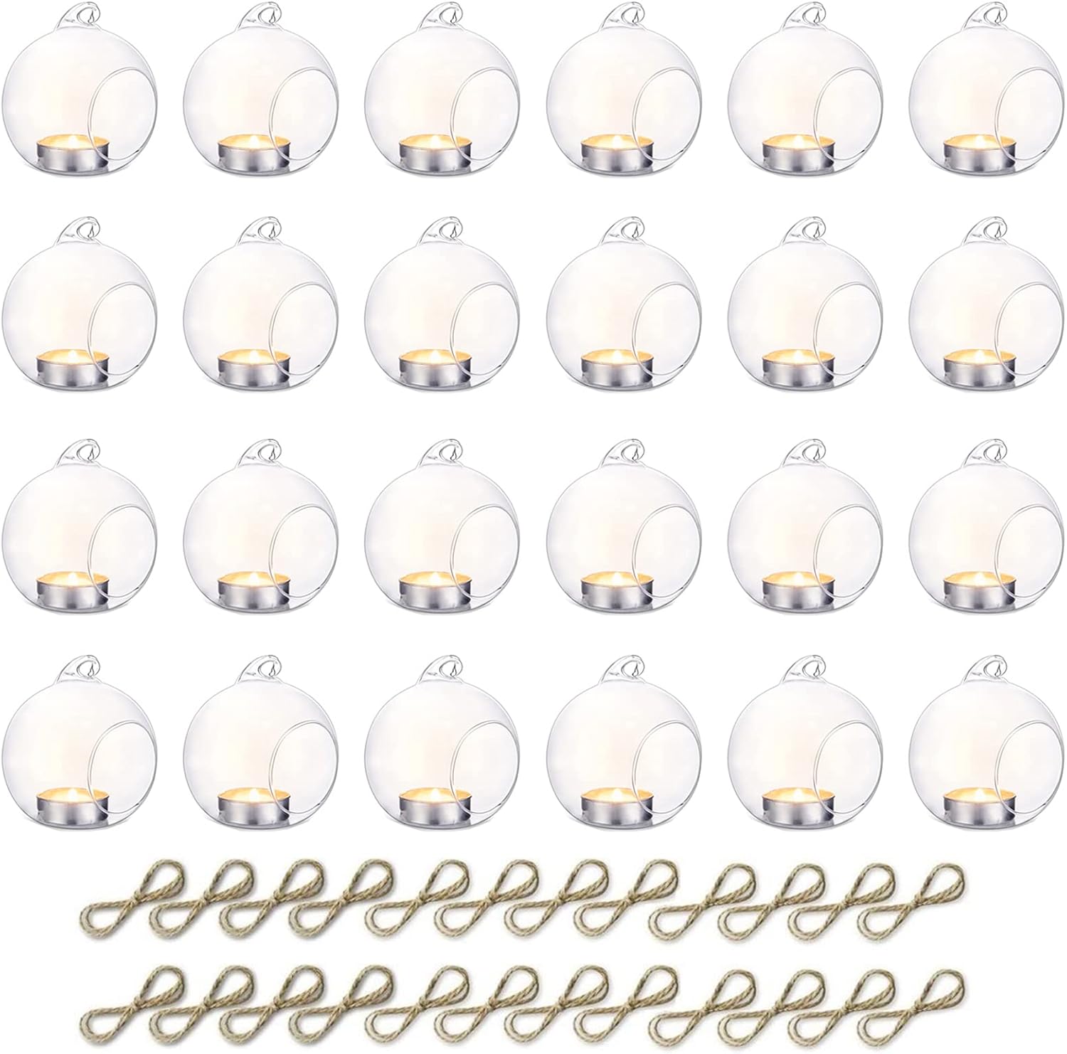 24 Pcs 3.15"/ 8cm Hanging Glass Tealight Holder Globe, Plant Terrariums Glass Orbs, Air Plants Tea Light Candle Holders, Home Decor Indoor Outdoor Garden (20 Pcs + 4 Pcs)
