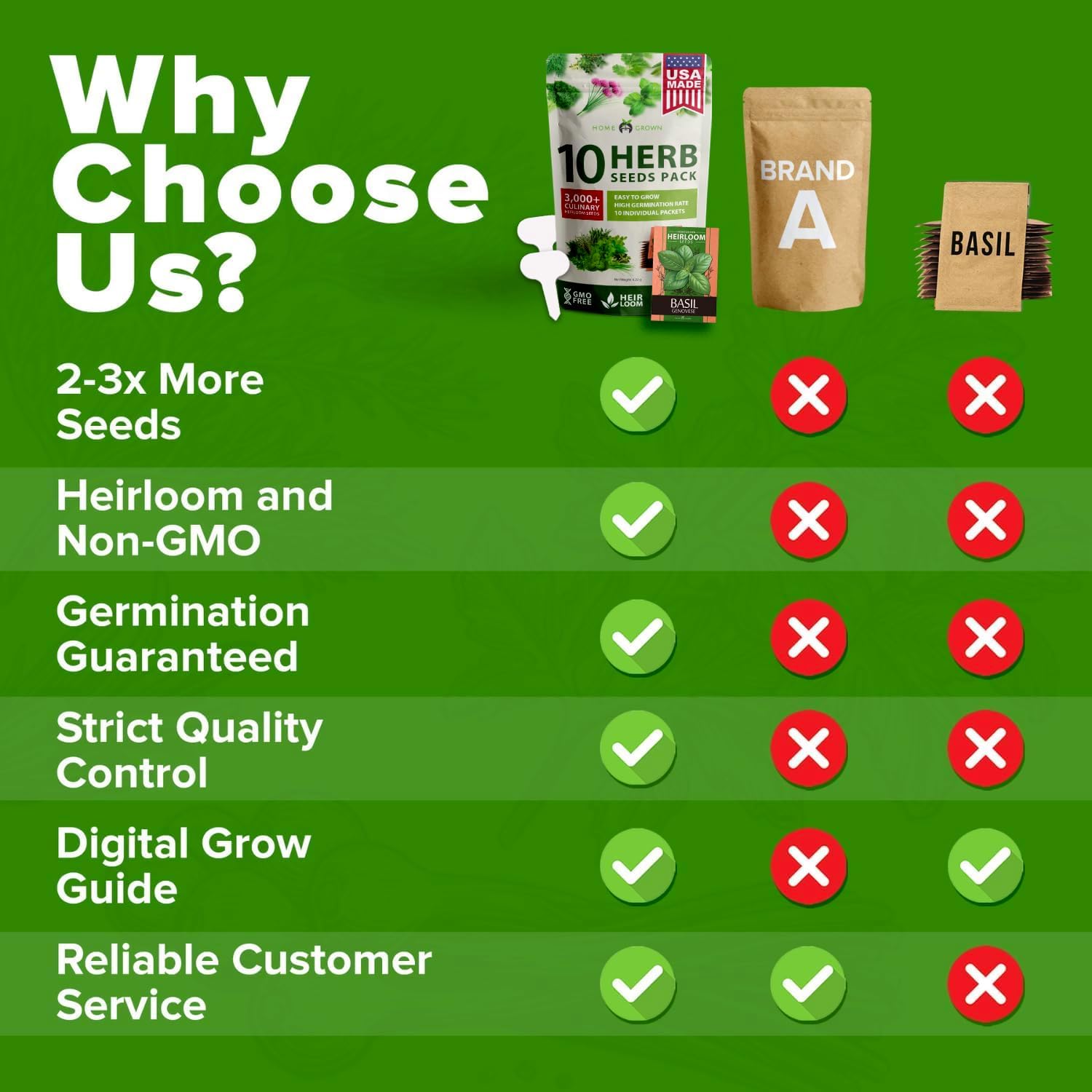 HOME GROWN 10 Herb Seeds for Planting 3,000+ Non-GMO Heirloom Seeds | Extra Large Variety Pack Herb Kit – Indoor Outdoor & Hydroponic | Culinary Seed Set | Grow Your Own Herbs | Gift for Beginners