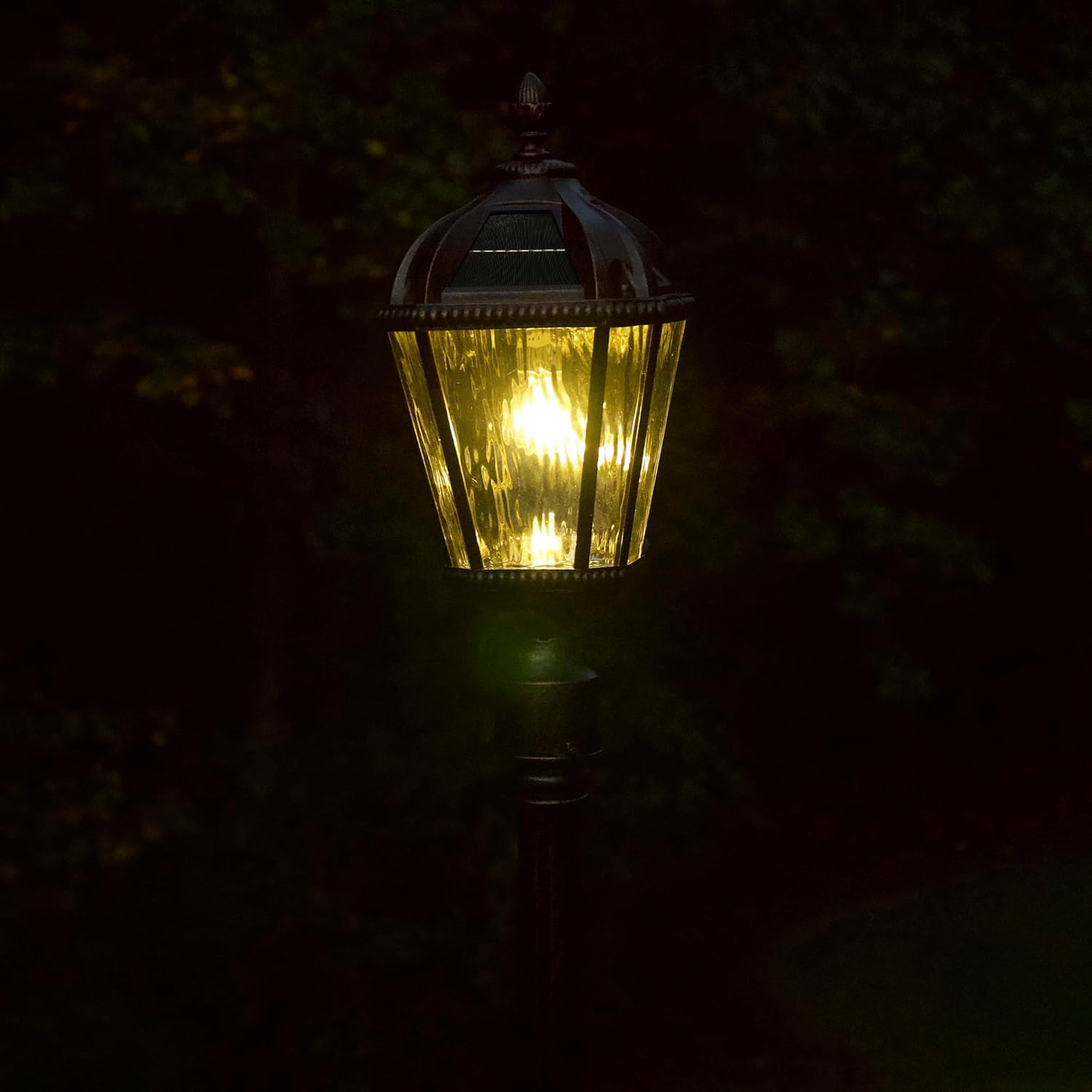 Gama Sonic Outdoor Solar Post Light, Brushed Bronze Finish Aluminum, Royal Bulb, Clear Rain Glass, 3-inch Fitter for Lamp Posts 98B112 (Upgraded Panel and Battery)