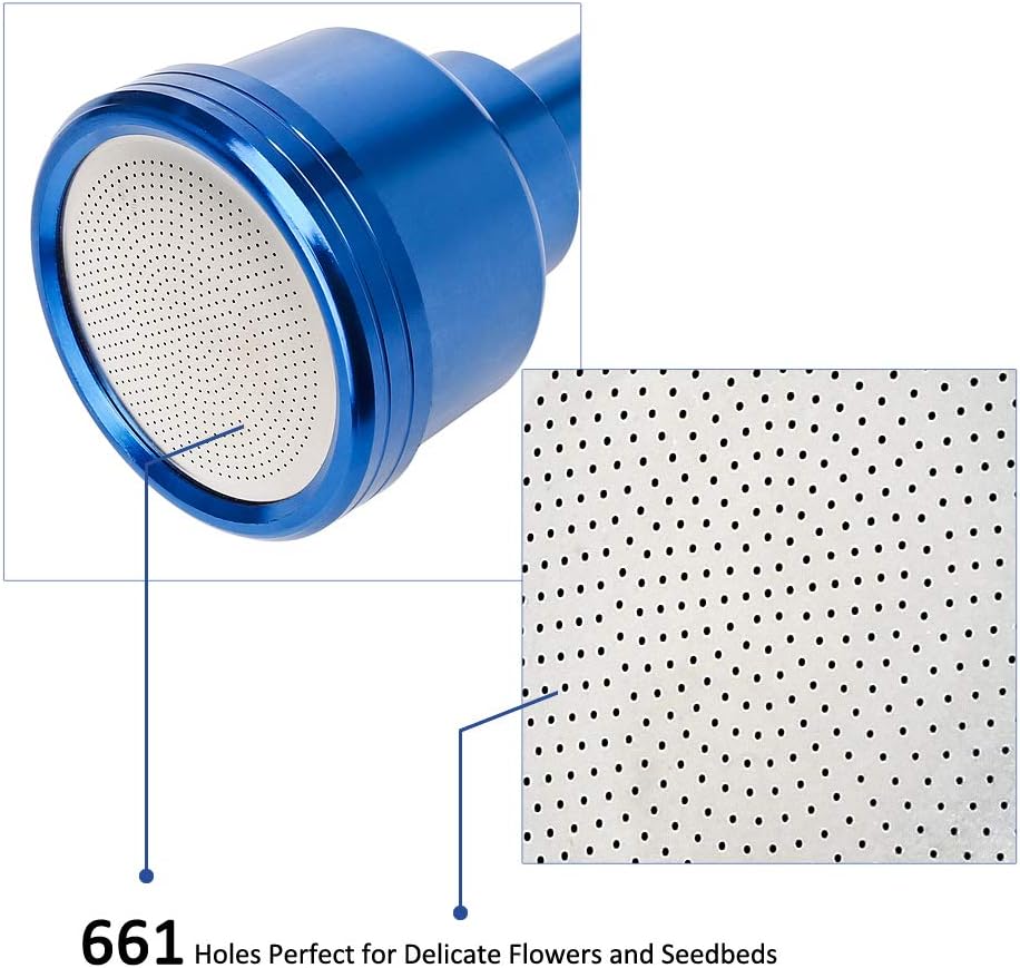 - NEW DESIGNED SHOWER HEAD. Especially 661 holes are perfect for delicate flowerbeds and seedbeds. The head is fully removable which allows to break down to pieces then clean the clogged parts