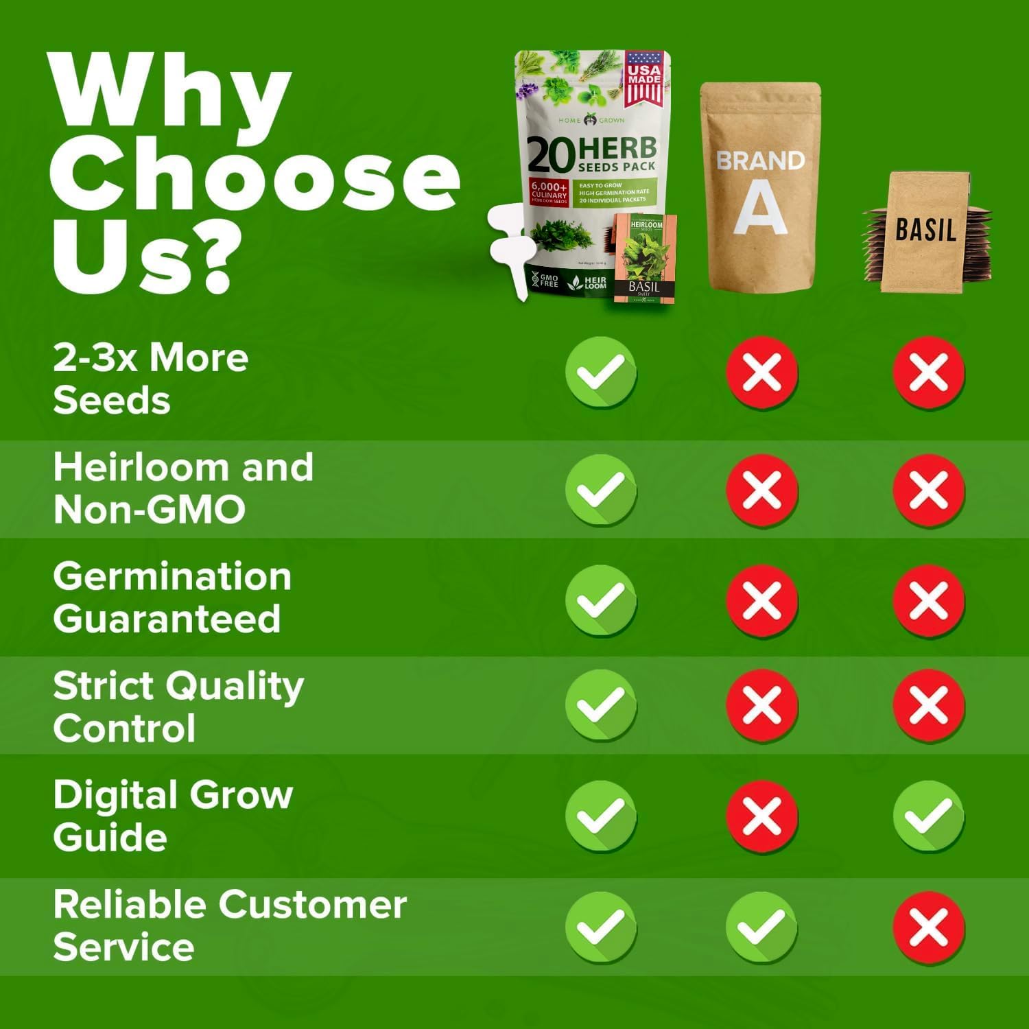 HOME GROWN 20 Herb Seeds for Planting 6,000+ Non-GMO Heirloom Seeds | Extra Large Variety Pack Herb Kit – Indoor Outdoor & Hydroponic | Culinary Seed Set | Grow Your Own Herbs | Gardening Gift