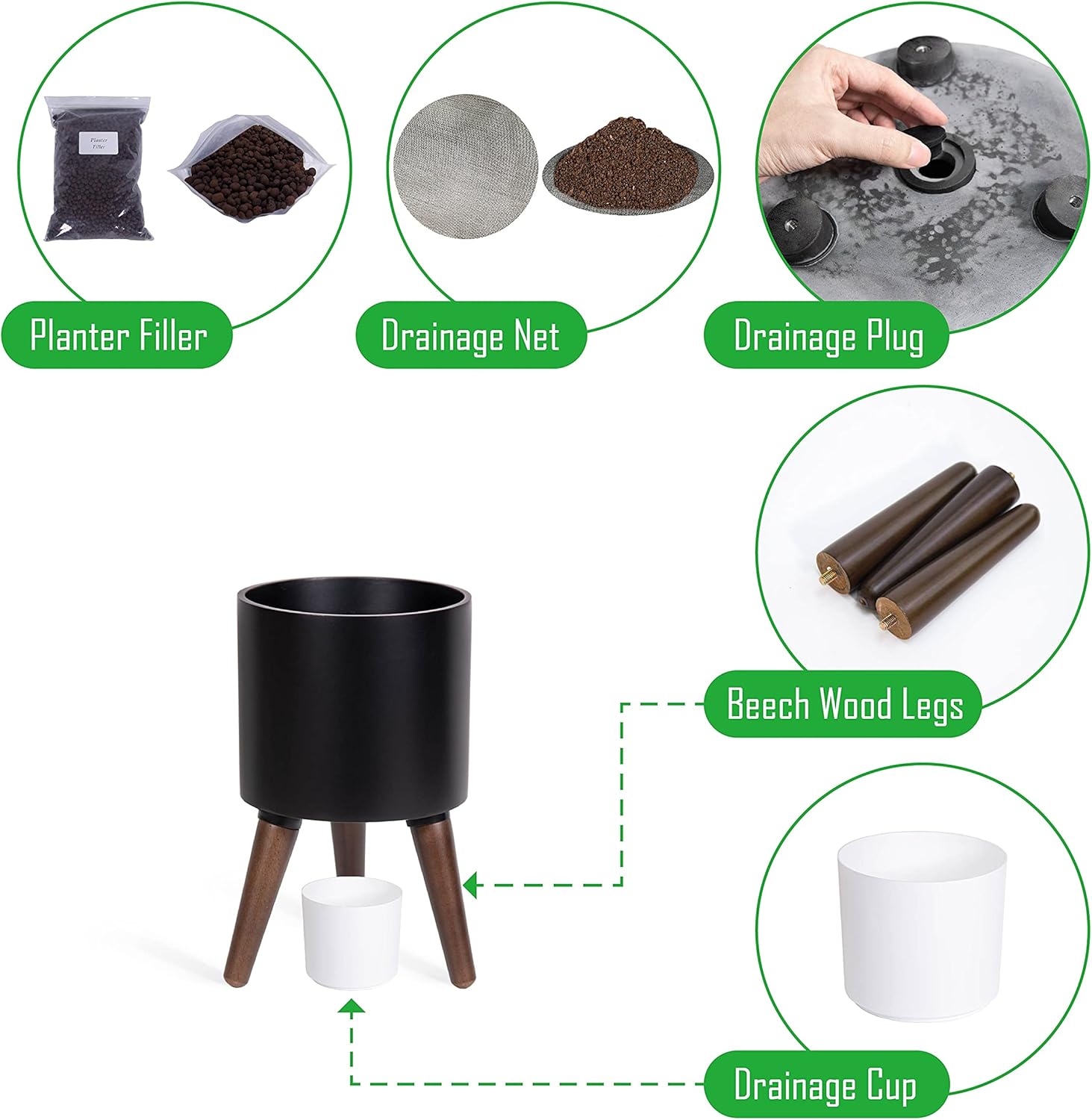 - Whatβs included: planter pot with drainage hole, set of stand β 3 solid wooden legs.