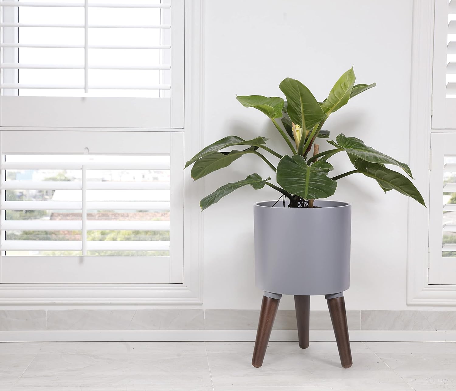 D'vine Dev 8 Inch Planter Pot with Stand, Mid-Century Tall Plant Pot with Legs for Indoor Plants, Small, Grey, 88-O-A-3
