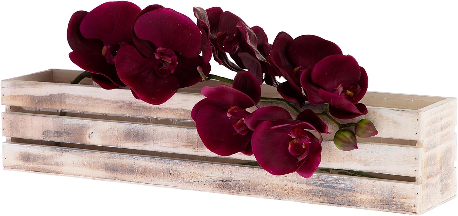 20" Rectangular Rustic Wood Planter with Plastic Liner l Rustic Whitewash l Wine Crate Style, Home and Wedding Decorations, Garden Ornaments (20x4 Wine Crate Set of 2, Whitewash)