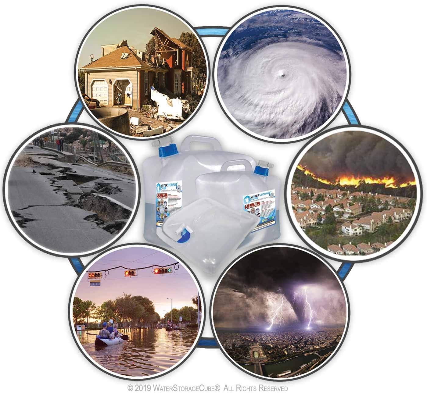 WaterStorageCube 3pc/5pc Premium Collapsible Water Container Bundle Cube + Bag, No BPA Camping Drink Storage Carrier Jug for Outdoors Hiking Backpack & Survival, No-Leak Foldable Portable & Freezable