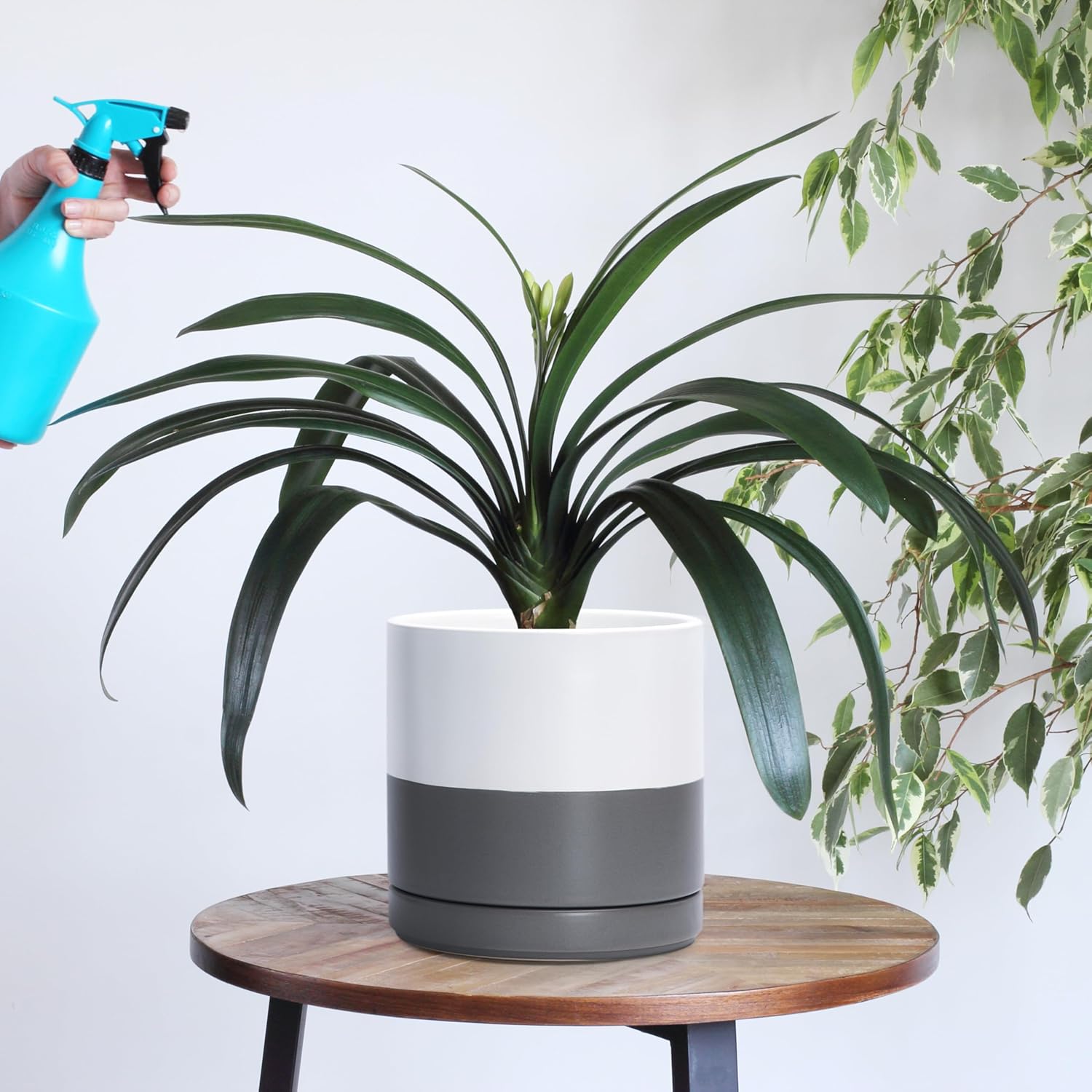 D'vine Dev 8.2 Inch Ceramic Planter Pot with Drainage Hole and Saucer, Indoor Cylinder Round Planter Pot, White/Speckled Grey, 94-O-D-6