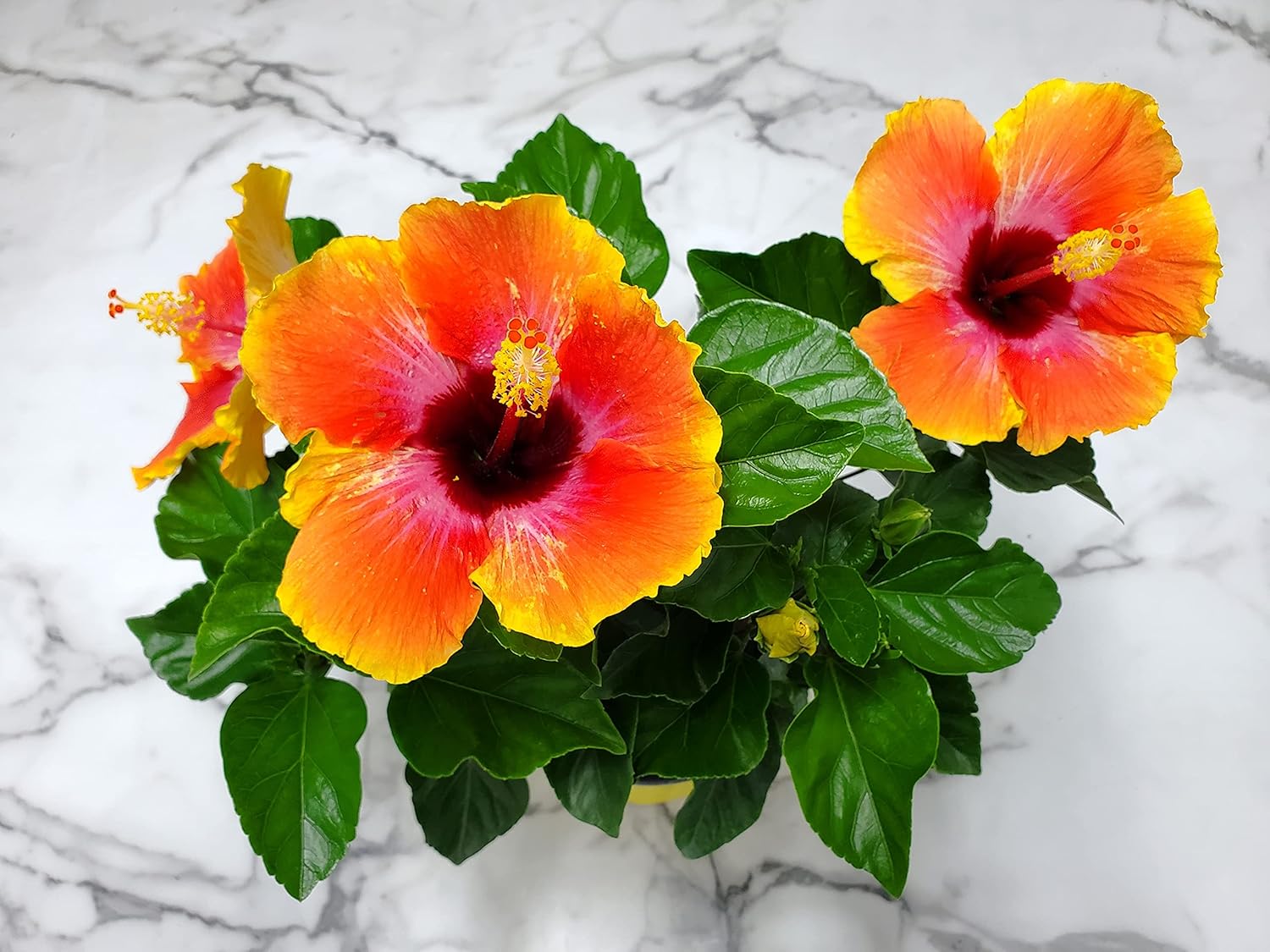 Fiesta Hibiscus Bush - Live Hibiscus Flowering Plant - Tropical Flower Plant - 1 Gallon Planter - Overall Height 10" to 14" - Tropical Plants of Florida (Plant Only)