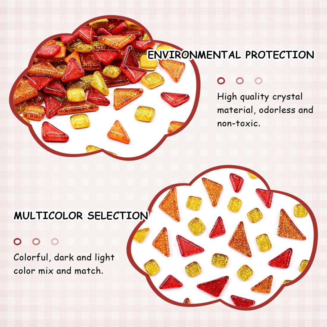 - 【 Mosaic Pieces Beautiful Colors 】----- In vibrant colors, such as pink, white, blue, yellow, green and more, can be arranged into beautiful patterns on your craft projects. Absolute value for money!