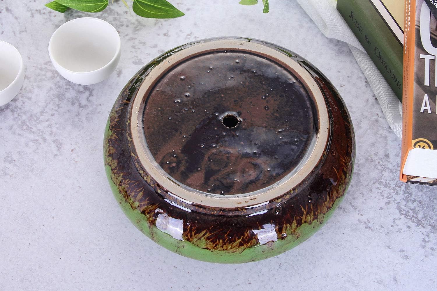 VanEnjoy 7.3 inch Round Large Shallow Succulent Ceramic Glazed Planter Pots with Drainage Hole, Bonsai Pots Garden Decorative Cactus Stand Flower Container (green)