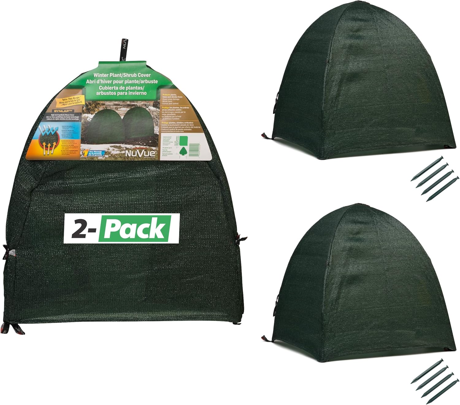 NuVue Products 22250 Winter Snow and Ice Covers for Plants, Shrubs, and Small Trees, Winter Shrub Covers for Snow and Freeze Protection, Pack of 2, Green, 22" x 22" x 22"