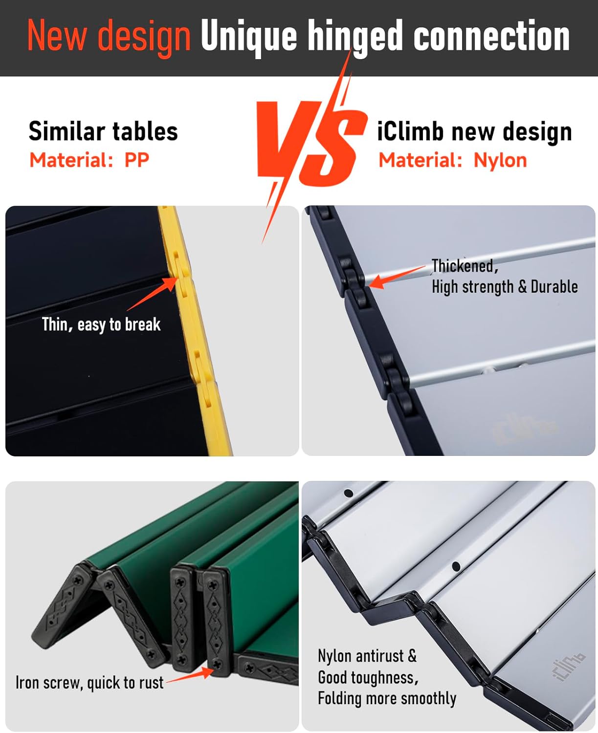 - Ultralight, made of high quality aluminum alloy 6063, only 1.5 lbs; Max Load 66 lbs; Unlike wooden or nylon-top tables, this table is durable, waterproof, corrosion-resistant, easy to clean; Heat resistant, can put your stove on