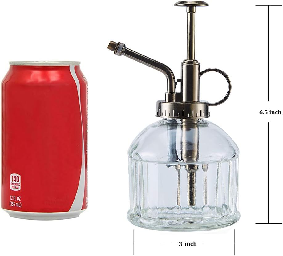 Glass Plant Mister Spray Bottle, 6.5" Tall Vintage Plant Water Spritzer Sprayer, Succulent Watering Bottle with Top Pump, Small Glass Watering Can for Indoor Outdoor Houseplant - Clear