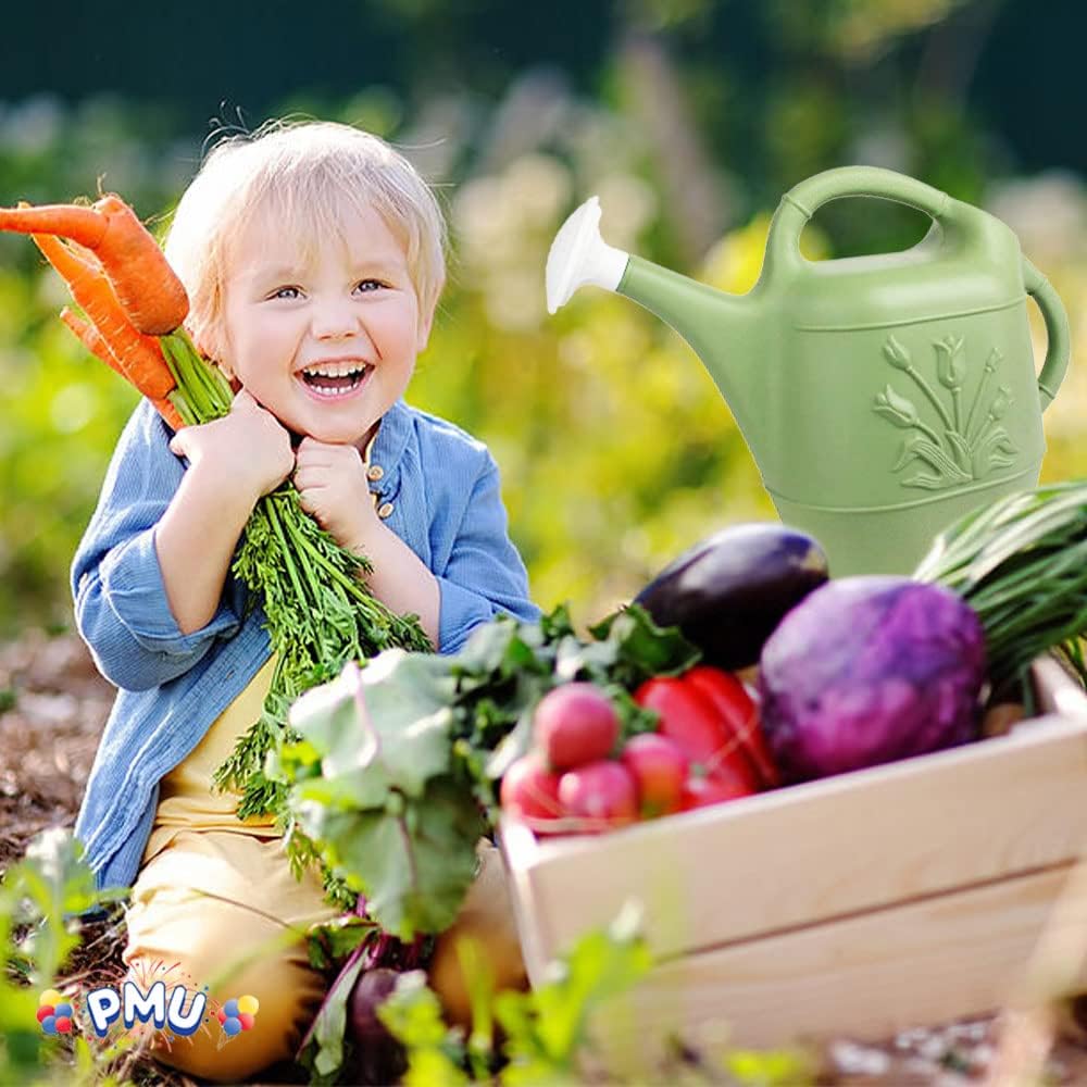 PMU 2 Gallon Watering Can - Garden Watering Can for Indoor & Outdoor Plants - Plastic Water Can with Detachable Sprinkler Head - Large Water Pot, Made in USA - Sage Green Pkg/1