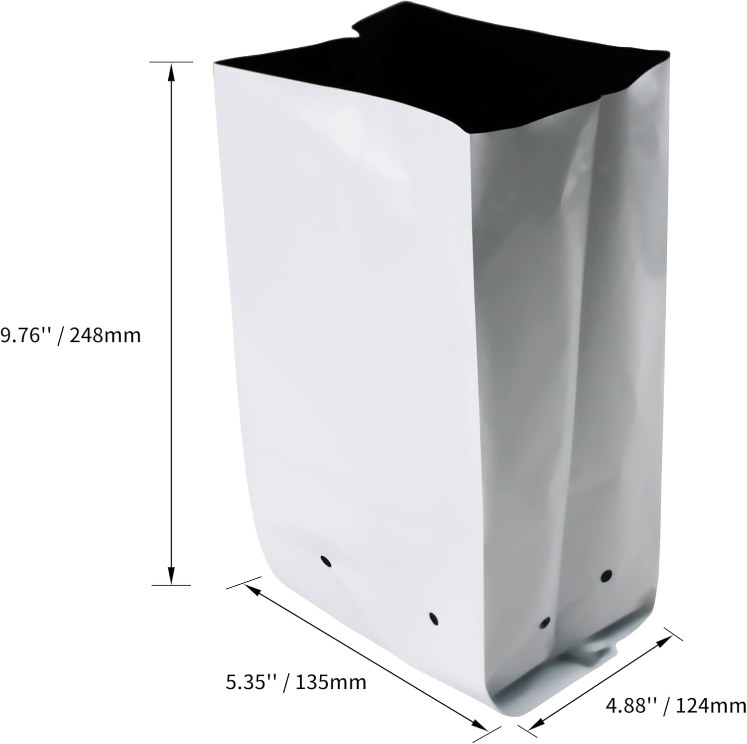 - [Material]: Crafted from poly film, these 1-gallon grow bags ensure durability and longevity. The 60-micron thickness ensures tear resistance for multiple uses. Flat length:12.6" / 320mm; Flat width: 5.35" / 136mm.