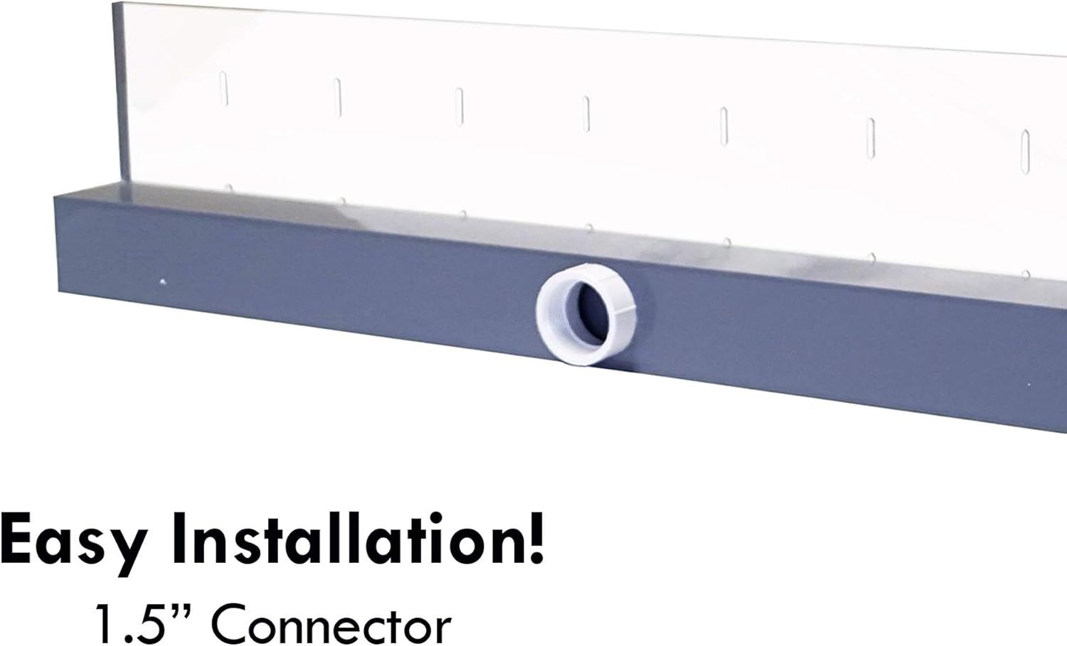 - Water inlet is 1.5" Female Thread Located In Center on spillway box bottom. We recommend 1000 GPH per foot of spillway length for proper flow