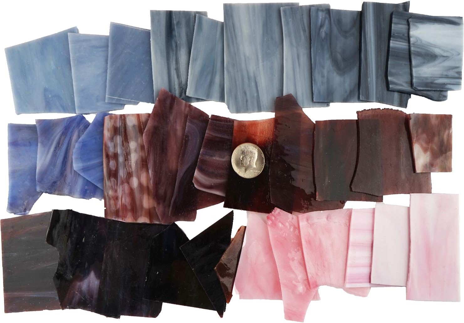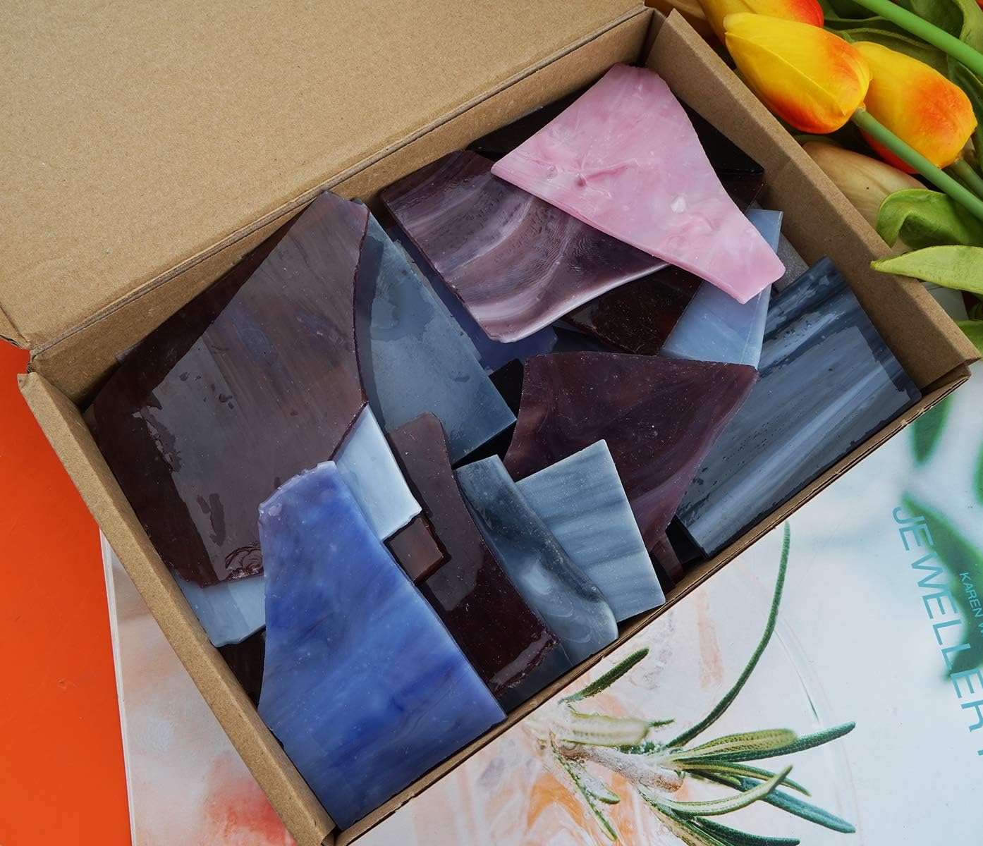Lanyani Stained Glass Scrap Pieces Sheets, Glass Mosaic Tiles for Crafts, 35oz Value Pack,Assorted Colors and Textures