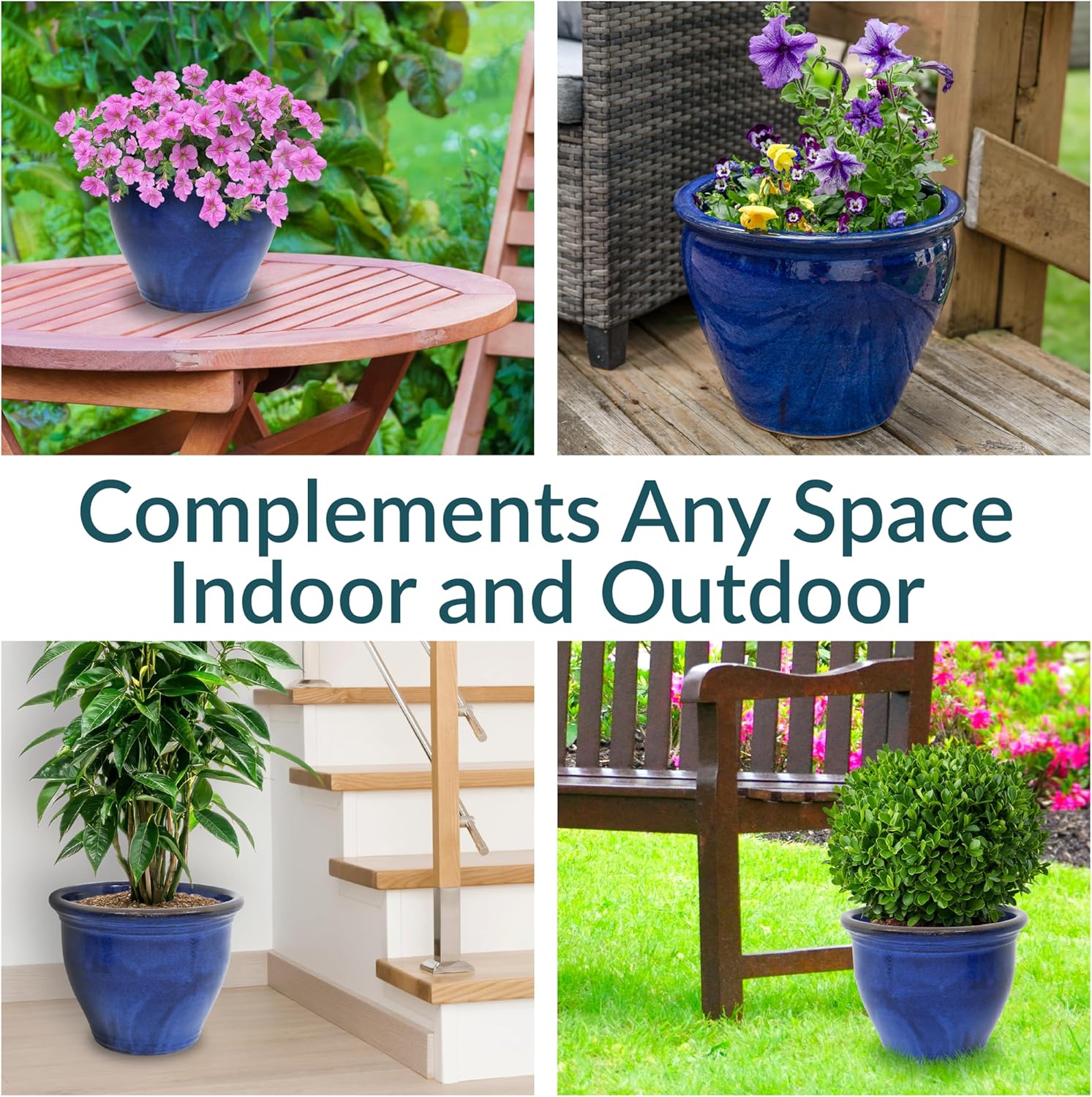 - DESIGNED FOR BEAUTY AND DURABILITY: This outdoor plant pot is crafted with a rich, hand-painted glazed finish that is kiln-fired for a classic, shining appearance. Subtle variations in color highlight the artisanal glazing process, making each piece truly unique. The durable ceramic construction offers natural UV and frost resistance, while its heavy weight adds stability to outdoor arrangements, keeping the planter upright in windy conditions.