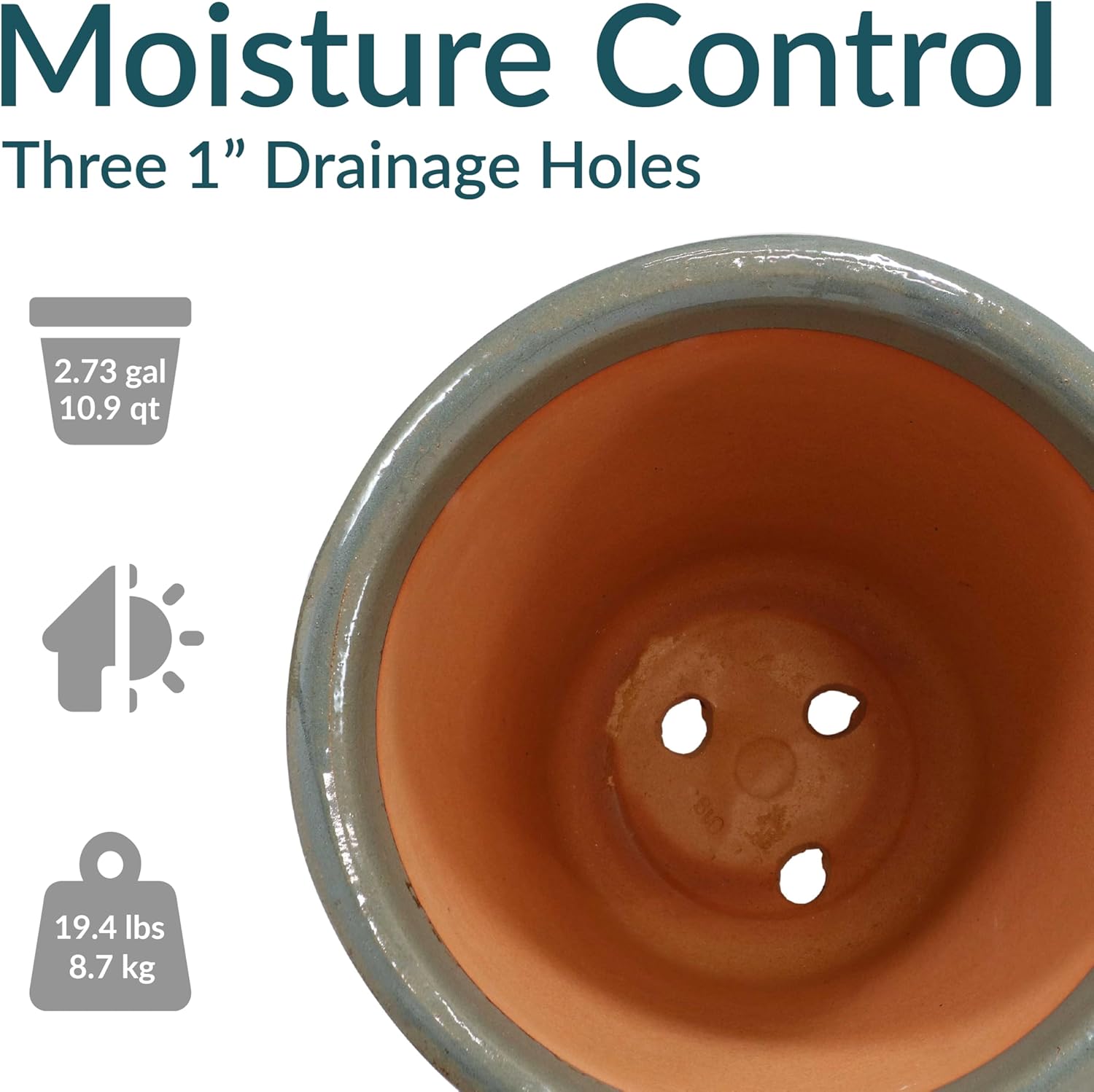 - DESIGNED FOR BEAUTY AND DURABILITY: This outdoor plant pot is crafted with a rich, hand-painted glazed finish that is kiln-fired for a classic, shining appearance. Subtle variations in color highlight the artisanal glazing process, making each piece truly unique. The durable ceramic construction offers natural UV and frost resistance, while its heavy weight adds stability to outdoor arrangements, keeping the planter upright in windy conditions.
