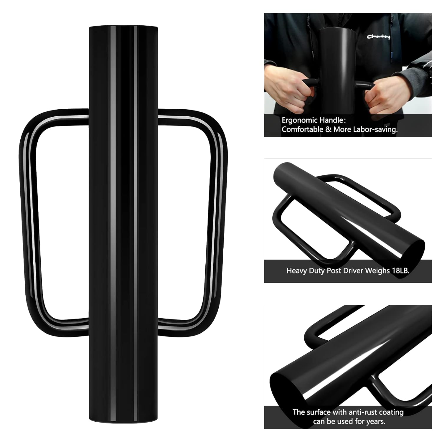 Gtongoko 18LB T Post Driver with Handles Heavy Duty Fence Post Driver Post Pounder for T-Posts,U Channel,Metal Post and Sign Post Pole Driver Tool,17 Inch Black