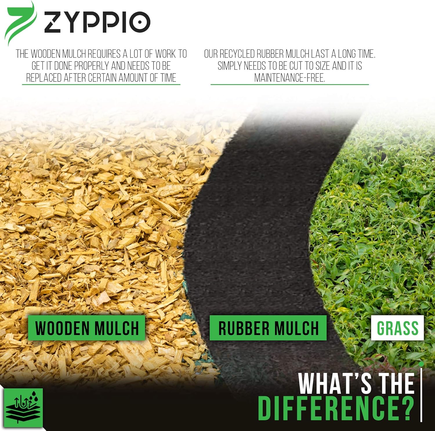 - Improved Water Aeration – Zyppio recycled rubber mulch rolls are designed to let air and water penetrate more effectively to ensure plant roots are getting optimal support. It’s also scatter proof, durable, and supports plants all year-round.