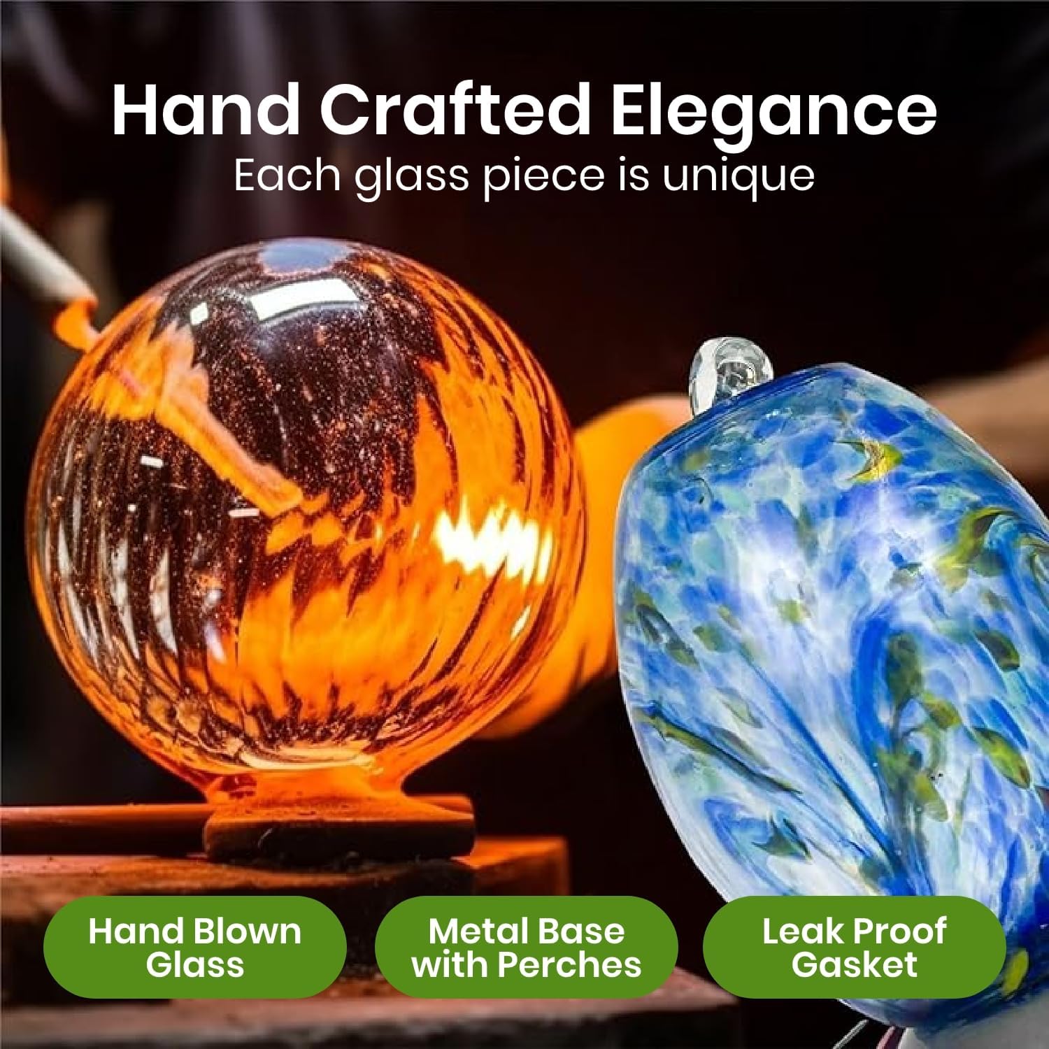- Experience Nature's Beauty Up Close: Transform your garden into a lively oasis with our vibrant, hand-blown glass hummingbird feeder; Watch as these captivating birds grace your space, adding color and joy to your outdoor environment