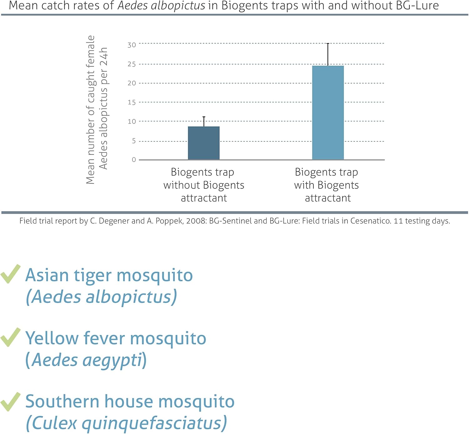 - ENDORSEMENTS: Biogents is a scientific company dedicated to keeping nuisance mosquito populations in check. Its products are used by the German and French militaries, numerous mosquito control institutions, and public health organizations in many countries, including the WHO.