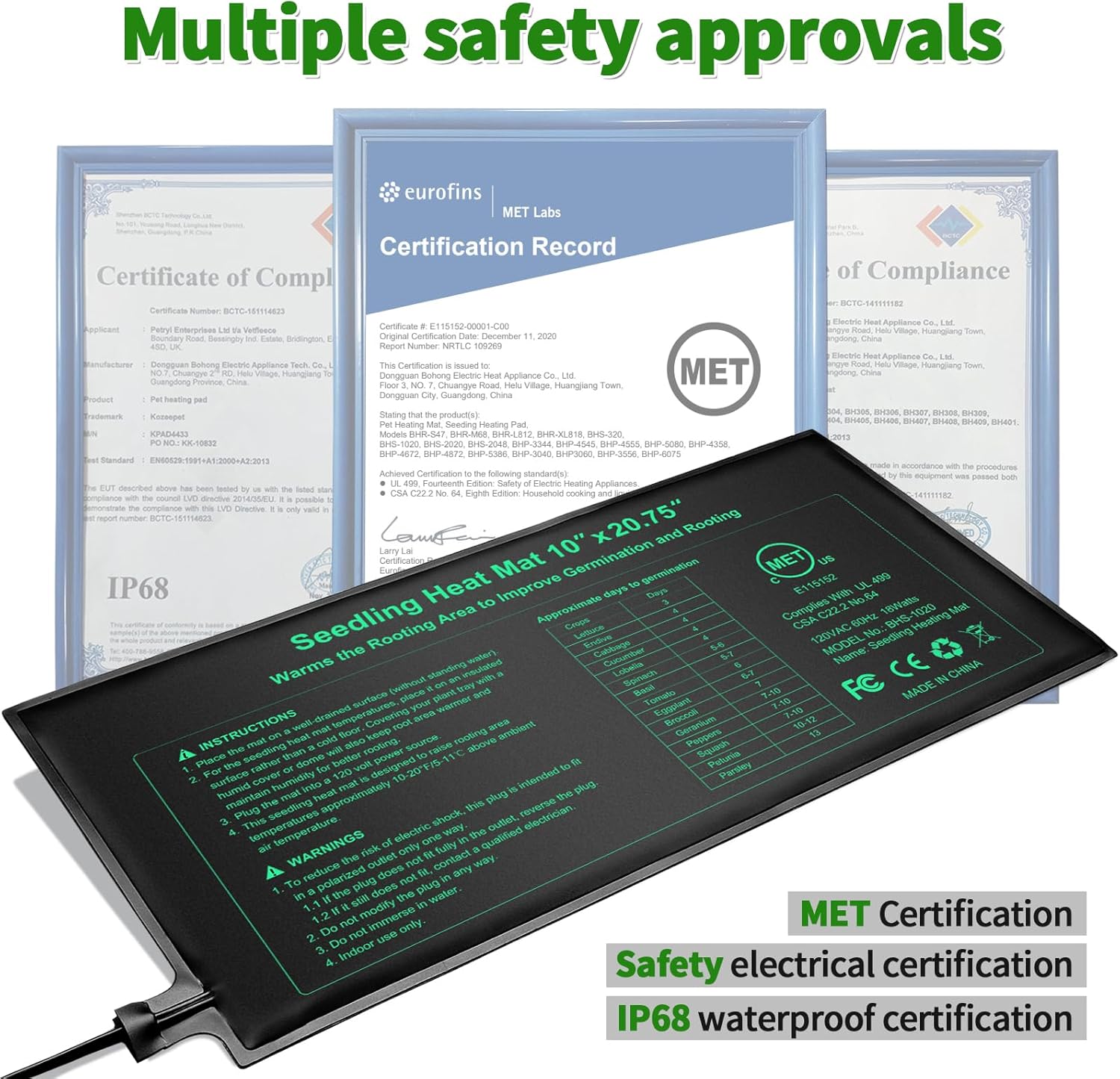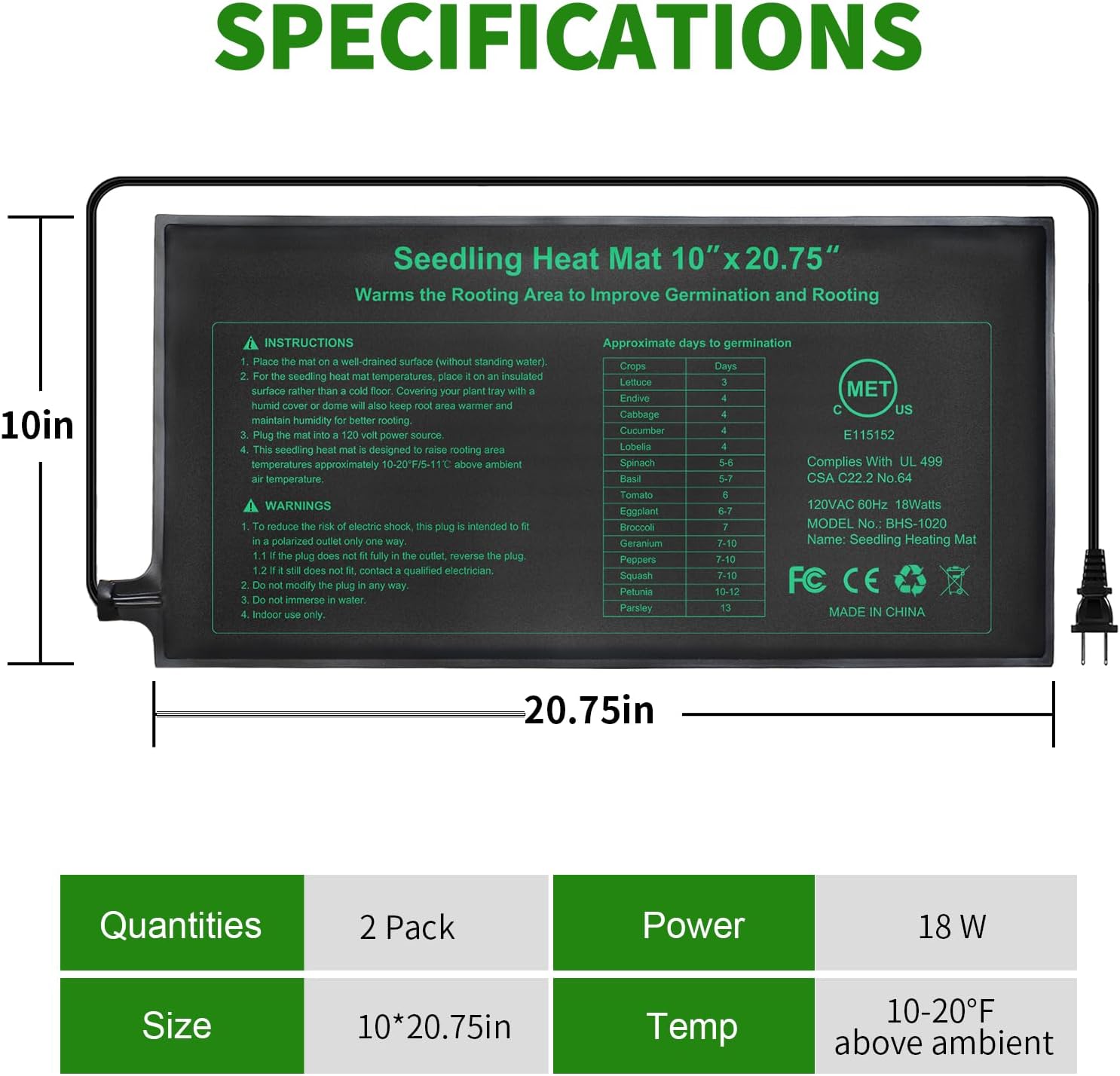 Seedling Heat Mat, 10"x 20.75" Plant Heating Pad for Home Gardening Seed Starting, MET Certified Waterproof Durable Germination Station Heat Mat
