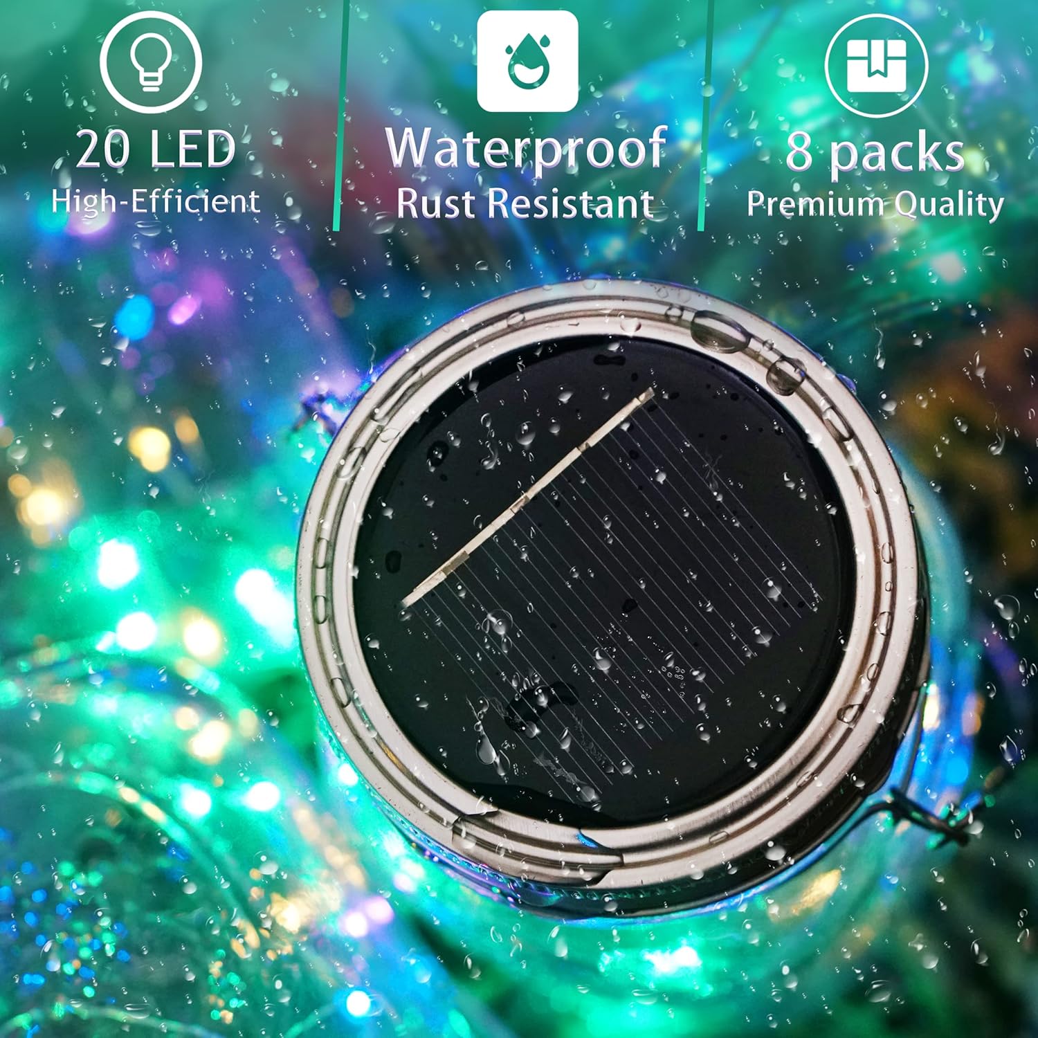 SunKite Solar Mason Jar Lights [Updated], 8 Pack 20 LED Waterproof Fairy Firefly Jar Lids String Lights with Hangers(NO Jars), Patio Yard Garden Wedding Decoration - Colorful