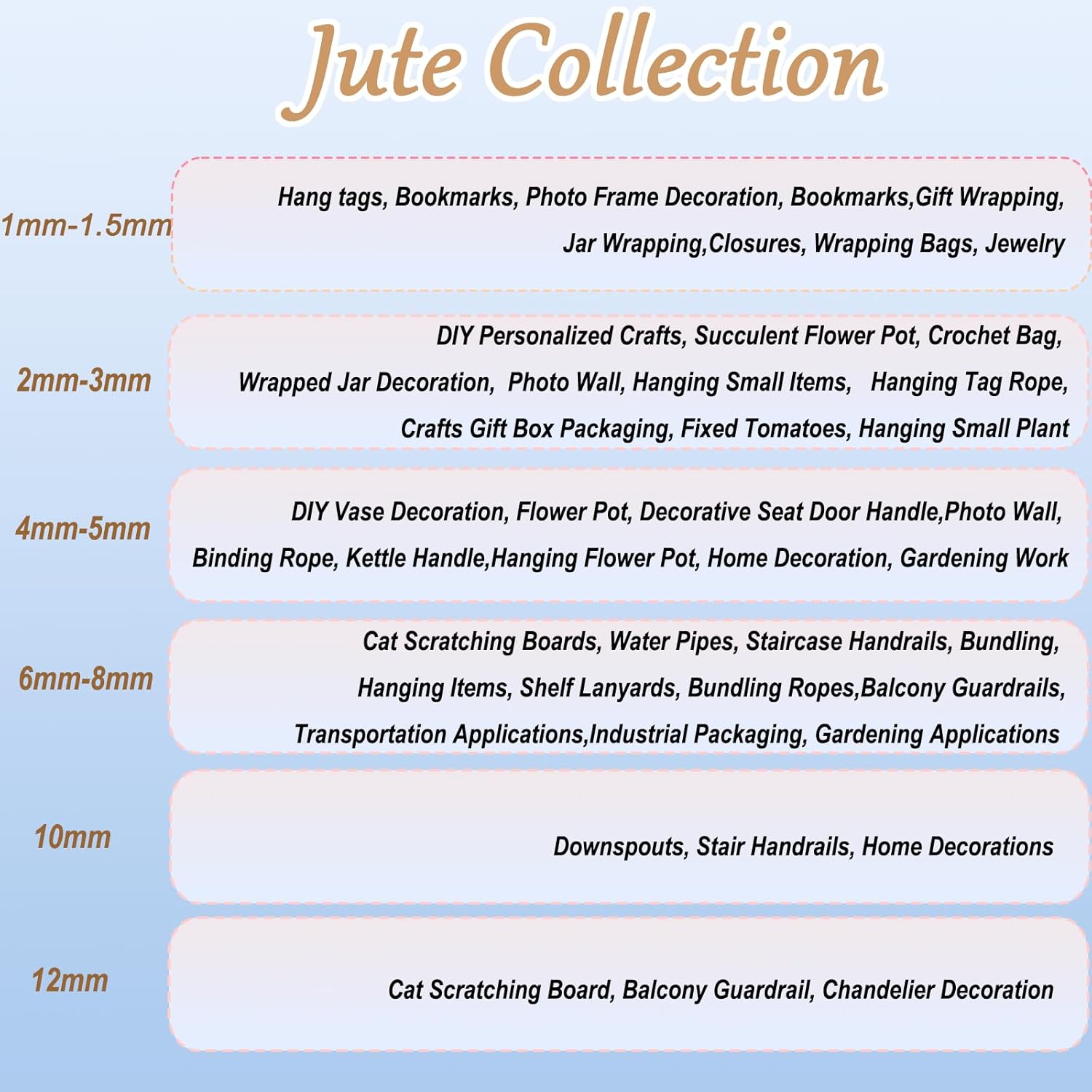 - Multipurpose Twine---This natural jute twine can be used in many occasions like gift wrapping, gardening, recycling, crocheting, crafting, binding and so on. Works great as packing material for the following festival like Thanksgiving Day, Christmas and more