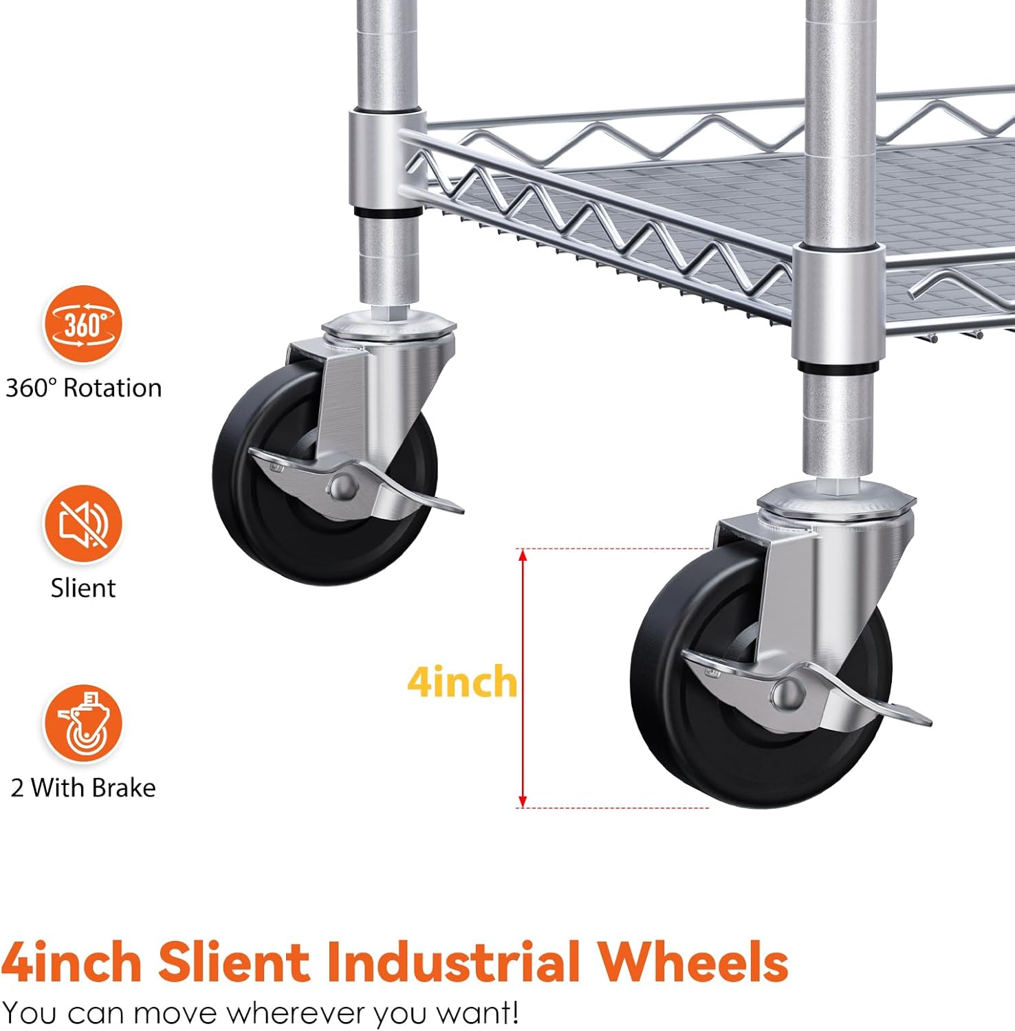 - Sturdy And Durable Rolling Cart: WDT utility cart on wheels made of chrome-finished steel for strength, durability, and to resist dirt buildup and corrosion. The rolling kitchen cart includes 4 wheels for mobility, 2 lock wheels for added stability.