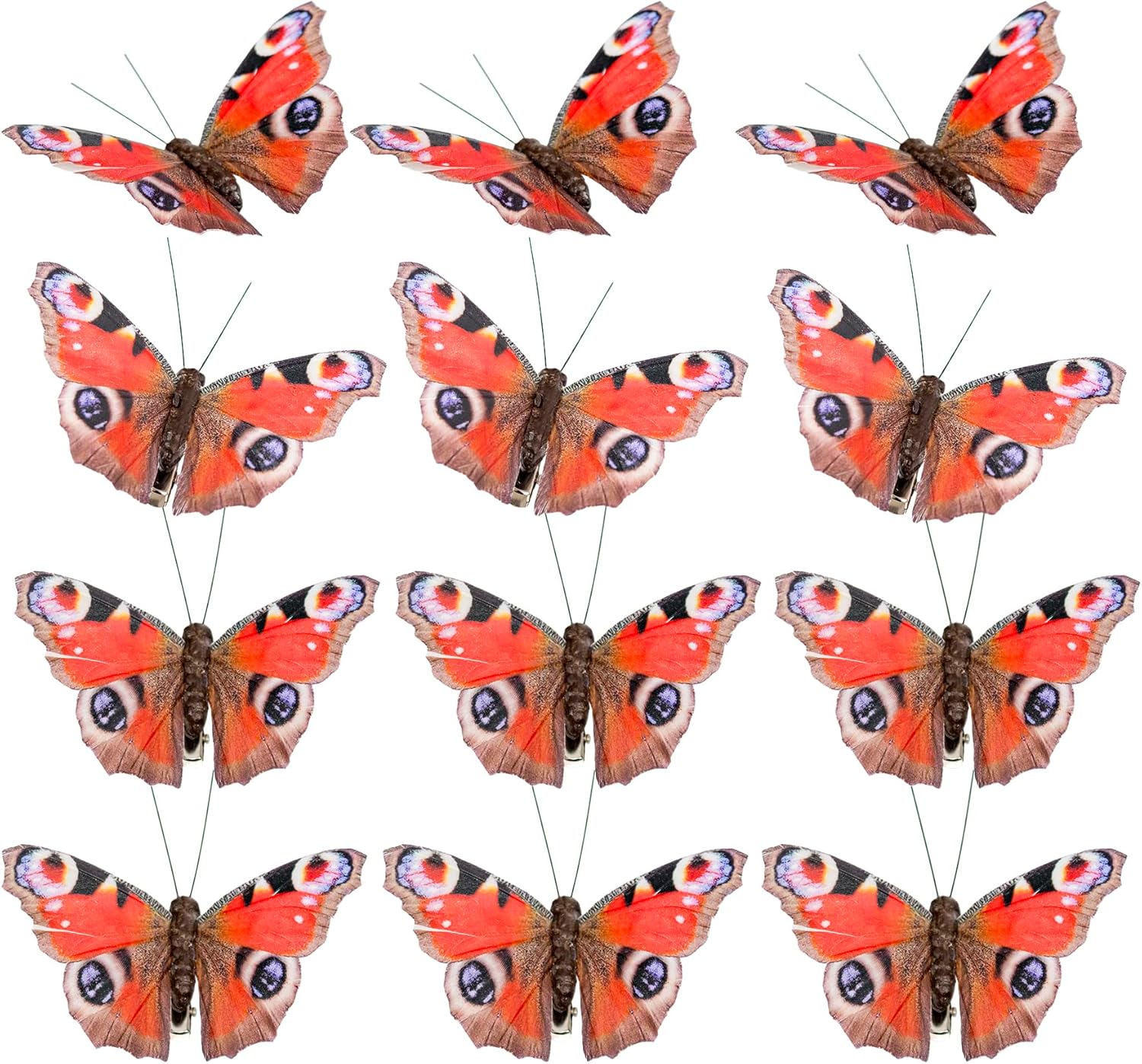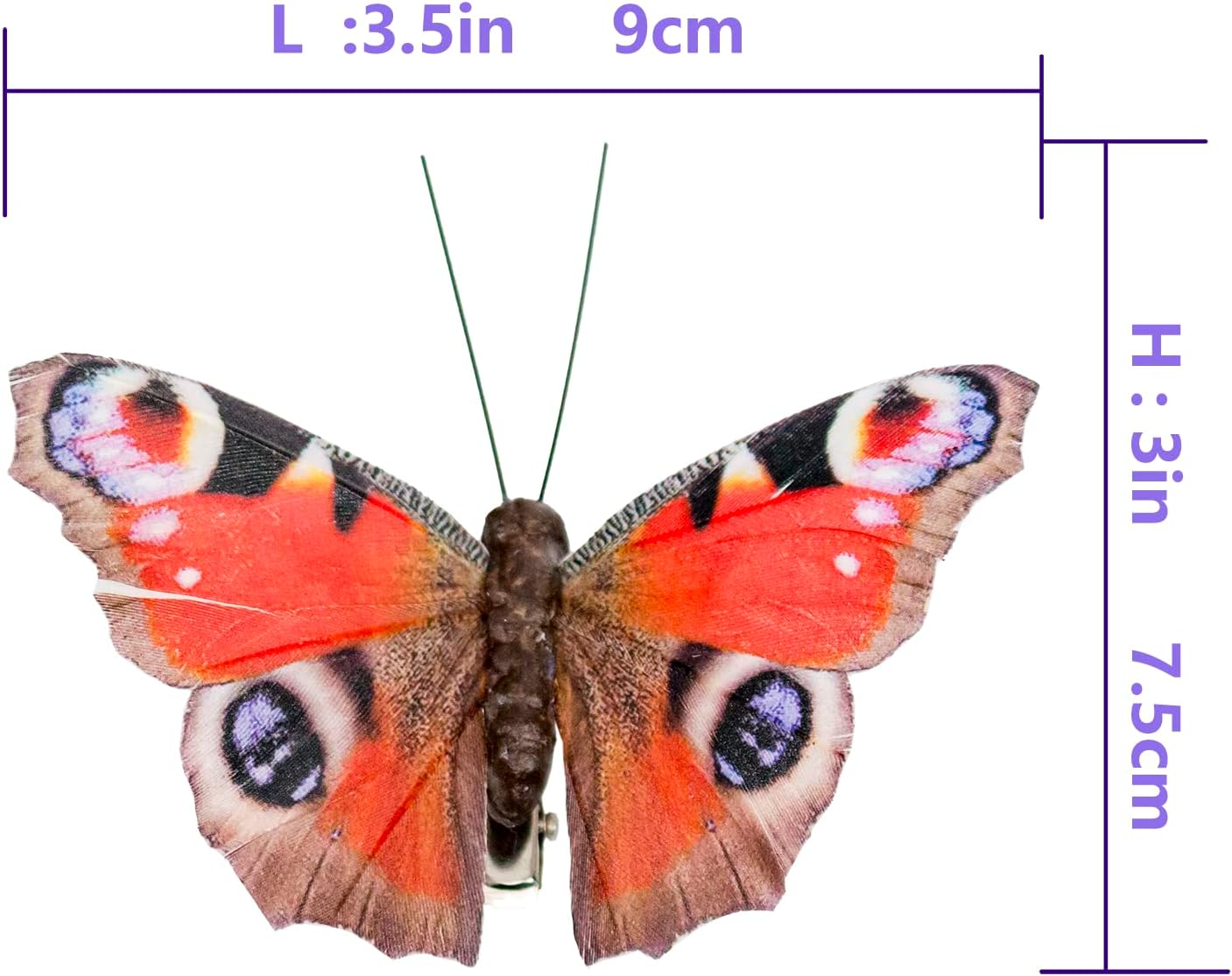 Berfutall-Inachis io Feather Fake Butterfly Decorations Set of 12 pcs with Clip Home and Party Decor Butterflies for Crafts…