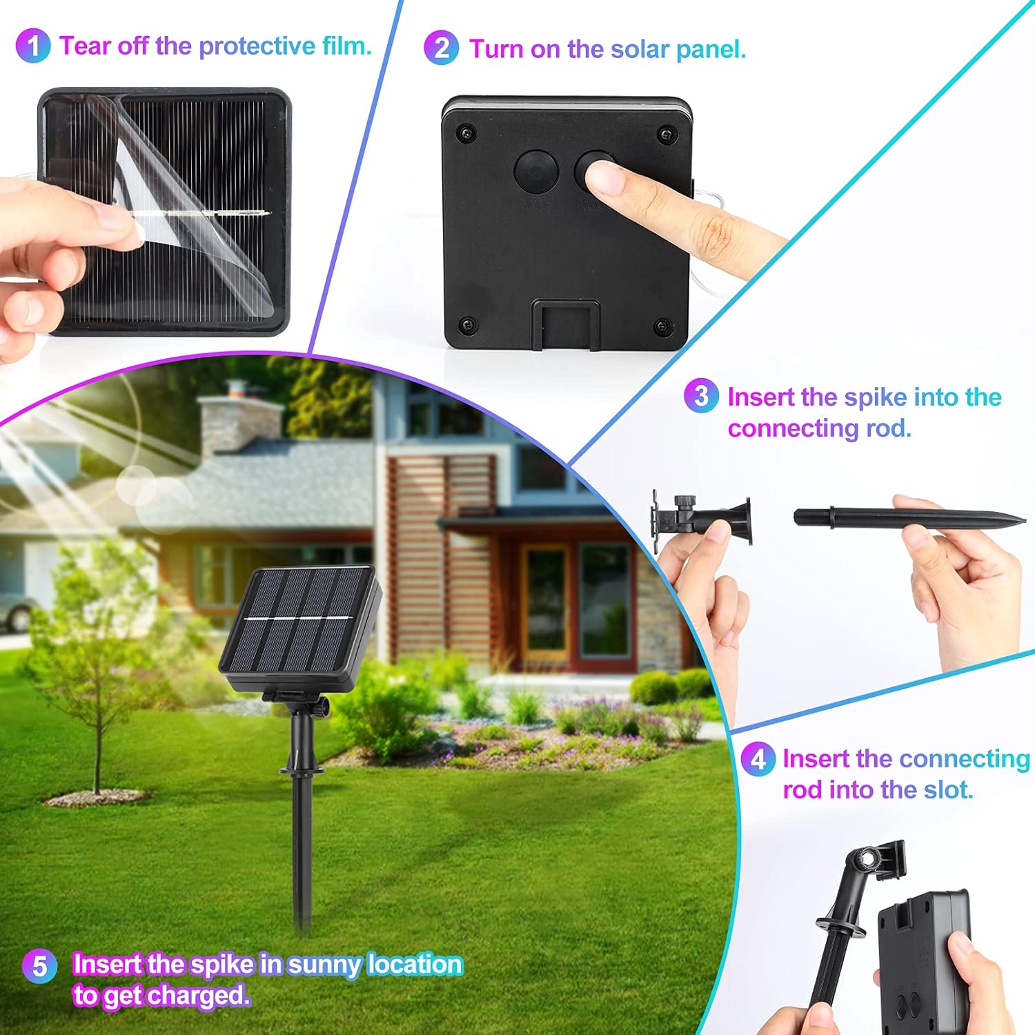 - Super Easy to Install: You surely will enjoy the ease of putting on the string lights for the highly flexible silver wire can be easily bent into any shapes you want and wrapped around trees, fences or any other objects. The solar panels can be either mounted on the wall or plug into the grass to get sunlight exposure. Considerably all necessary mounting accessories are included in the package for instant use