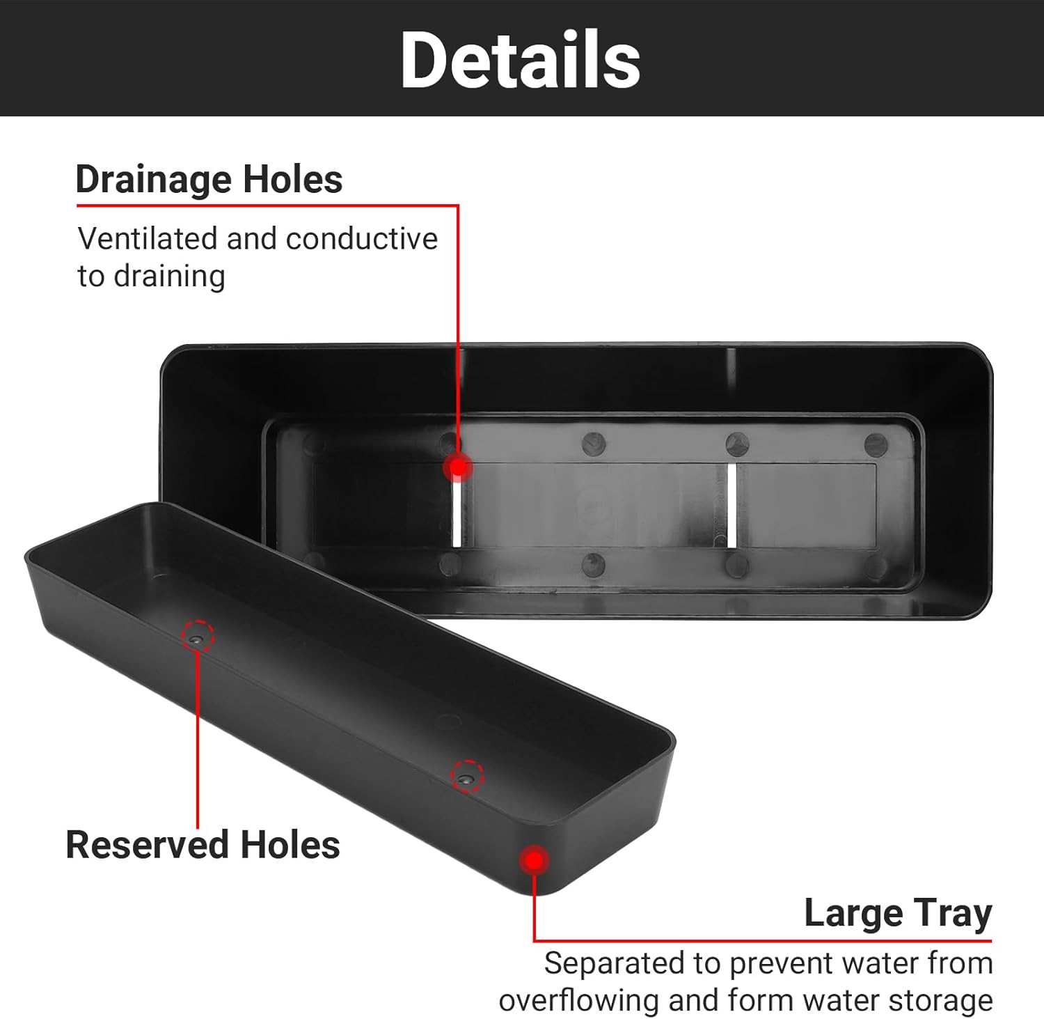 GREANER 12x3.8 Inch Herb Planters, 1 Pack Rectangle Window Boxes with Tray, Indoor Succulent Cactus Mint Plastic Pot for Windowsill, Balcony, Office, Outdoor Garden - Black