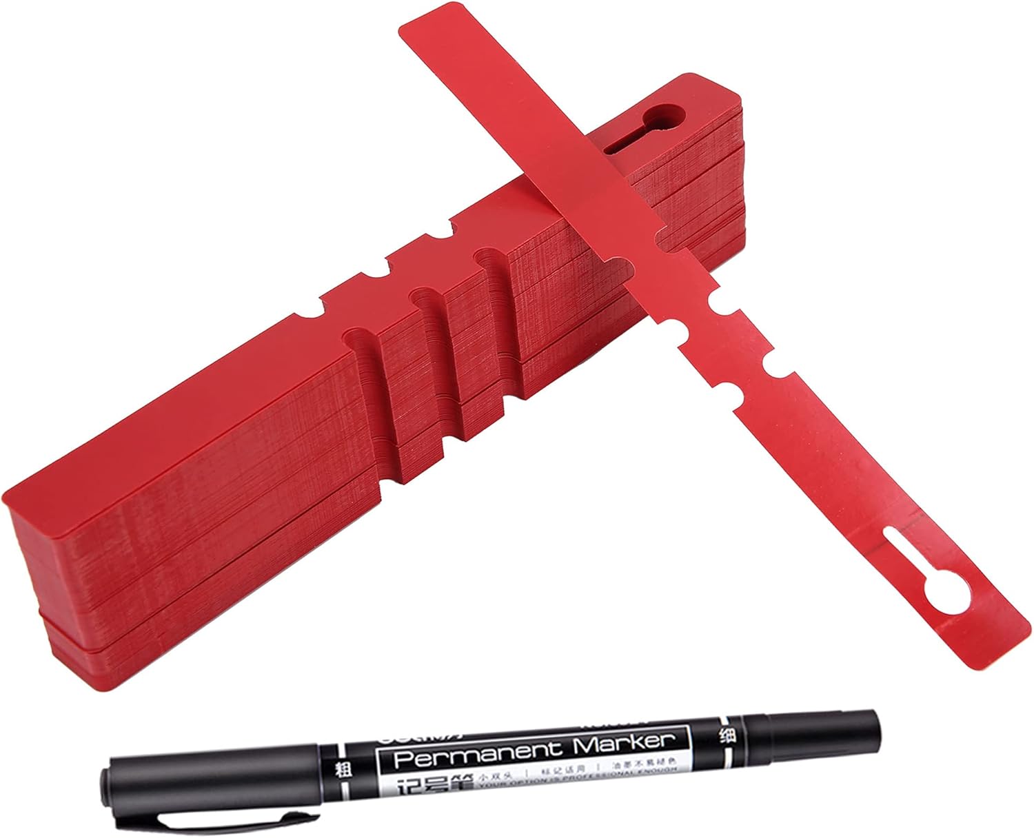 200 Pcs Red Plastic Plant Tags with a Marker Pen, Wrap Around Hanging Tree Tags Nursery Garden Labels Waterproof Nursery Garden Stakes, 2x20cm