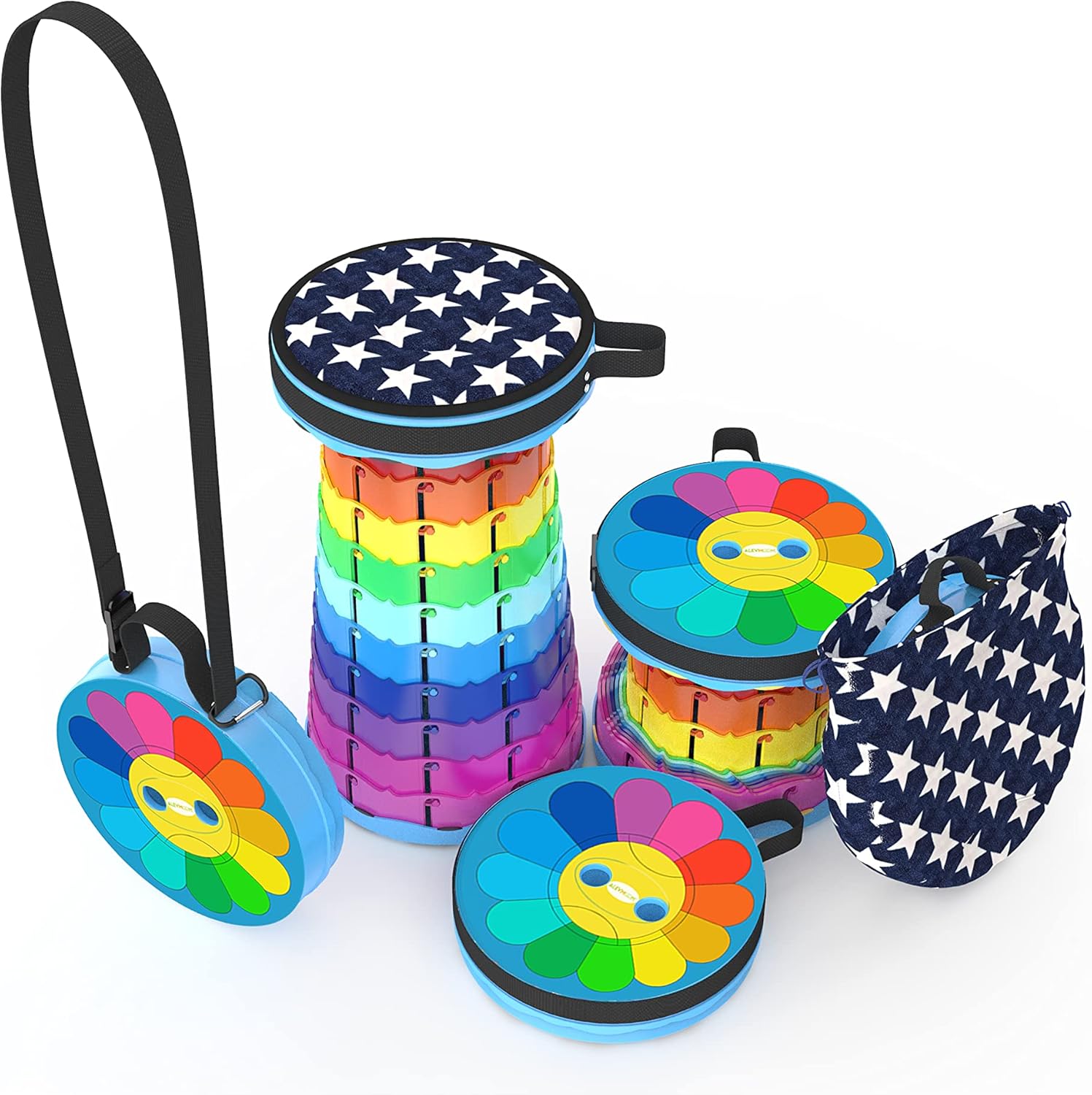 - ăUS Patent Designă Unique stable structure allows this telescopic stools for adults to open and close easily in just seconds, and it locks firmly in place once opened. Collapsible Stool with cushion is convenience,lightweight and Safety! These are really achieved through careful structural design.The patented pattern design of the sun flower will give you a good mood. Suitable for yourself or a good choice for family, friends and relatives .