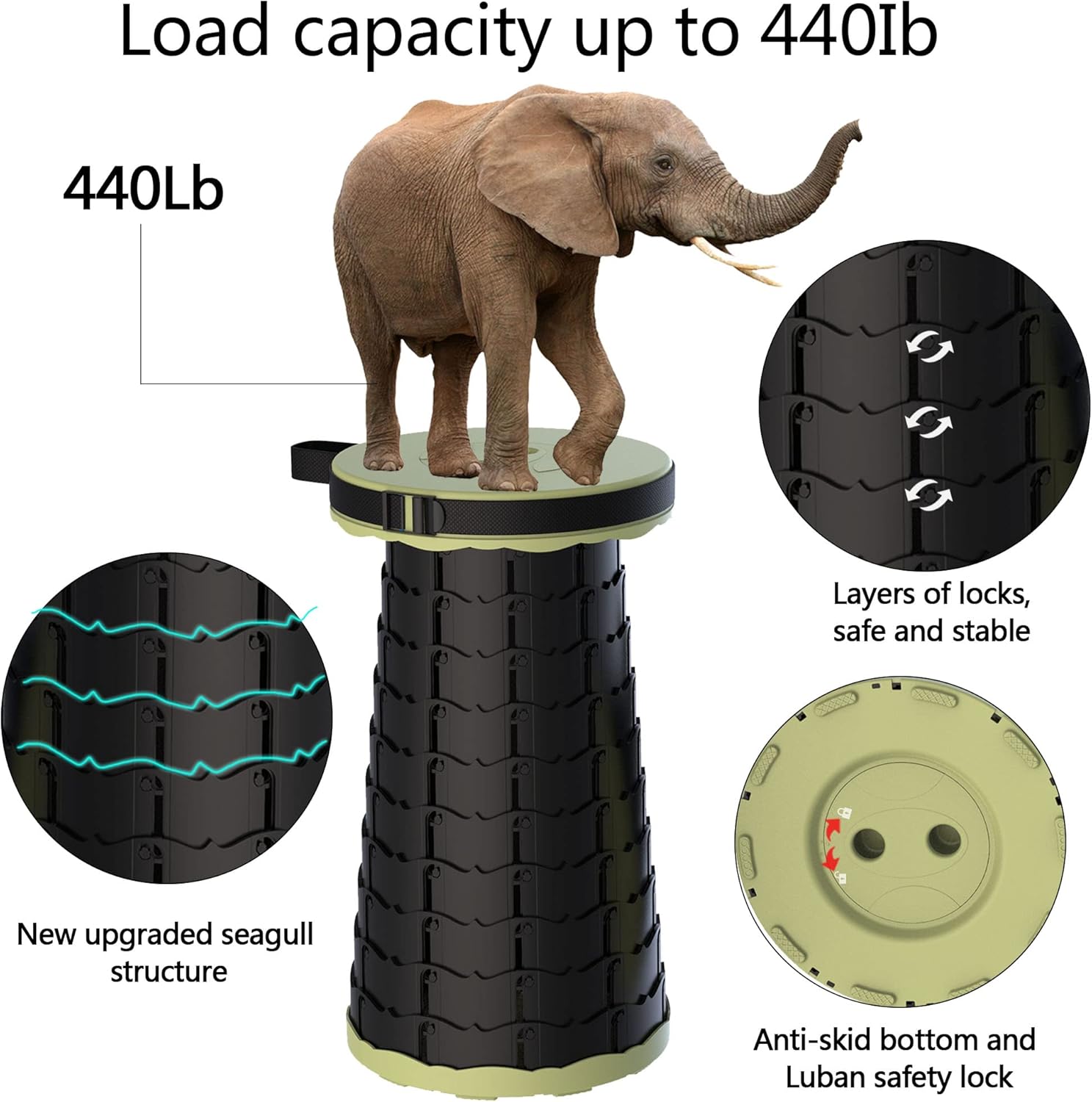 - 【LIGHTWEIGHT and PORTABLE】 This Telescoping Stool is only 9.8" in diameter and the weight is only 2.2Ibs. It can be put in a suitcase or storage box. The adjustable strap makes the chair easy to carry or hang on the shoulder. This ideal chair allows you to sit down anytime, anywhere.