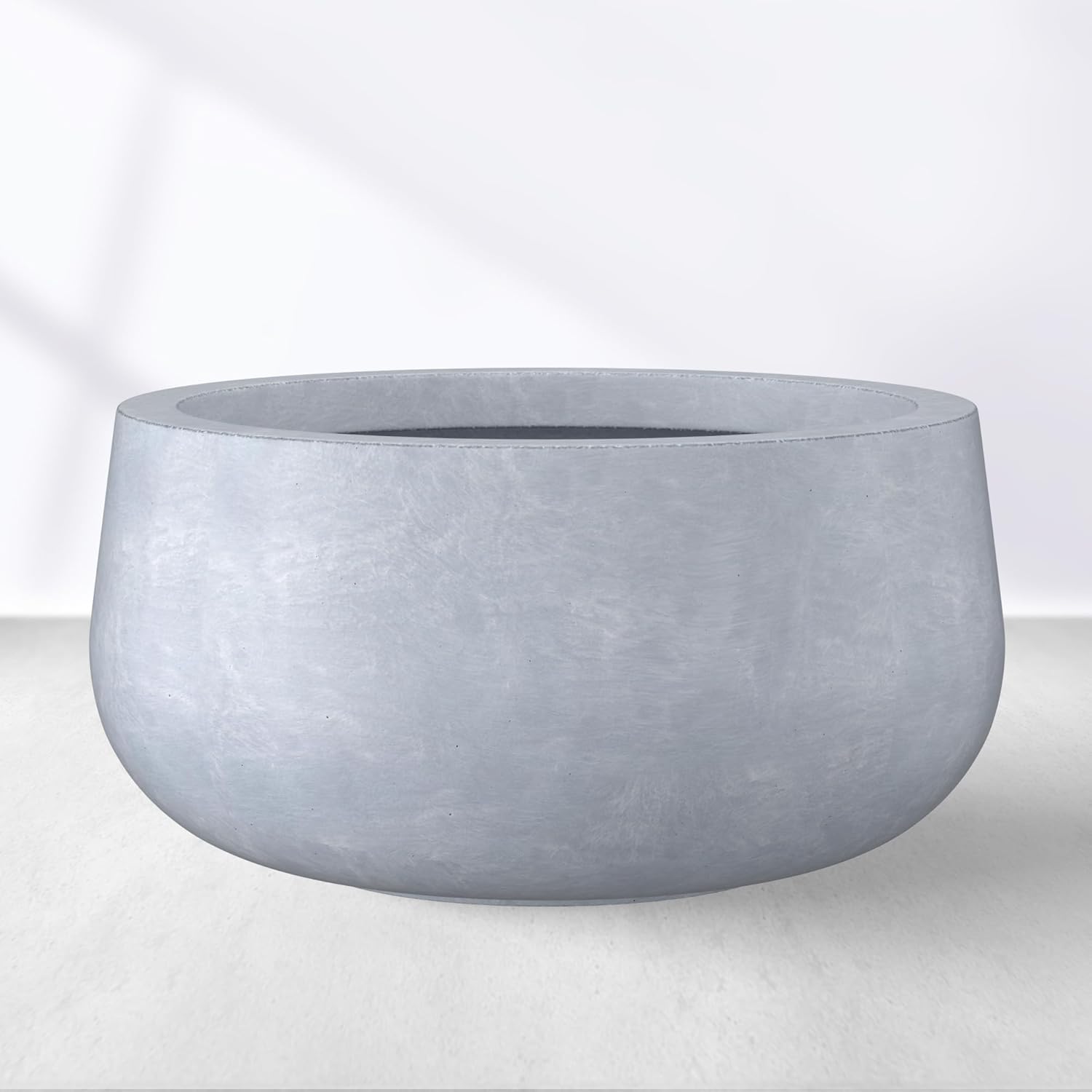 Kante 15.7" Dia Round Concrete Planter, Cement Plant Pots with Drainage Hole and Rubber Plug for Outdoor Indoor Garden Home, Modern Curvaceous Design, Gray