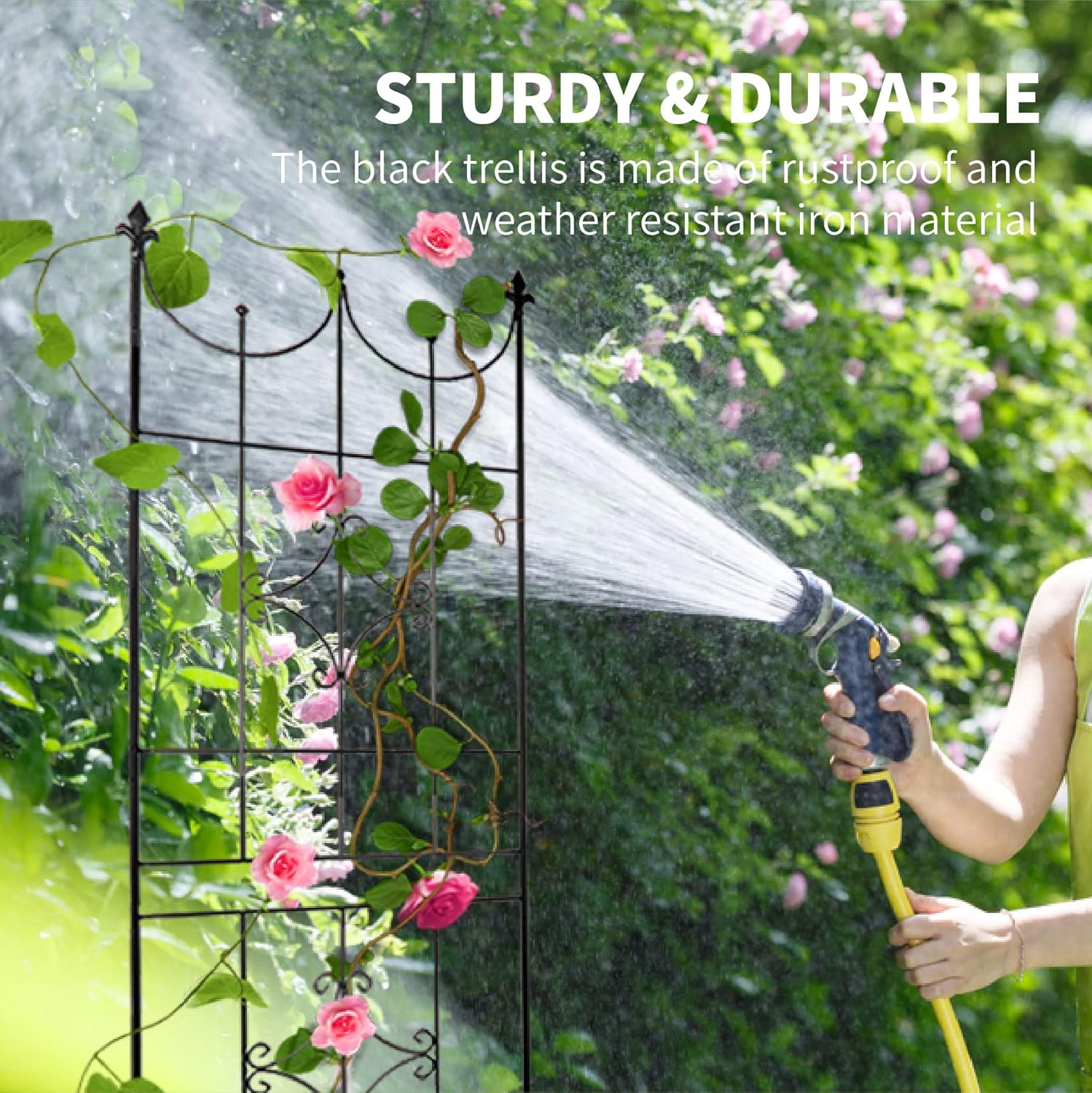 - [Stable Structural]: The metal frame of the lattice has strong and sturdy foundation of welded Iron that allows this 5.8ft structure to stand with stability.Wide arch side panels increase the climbing area of plants.